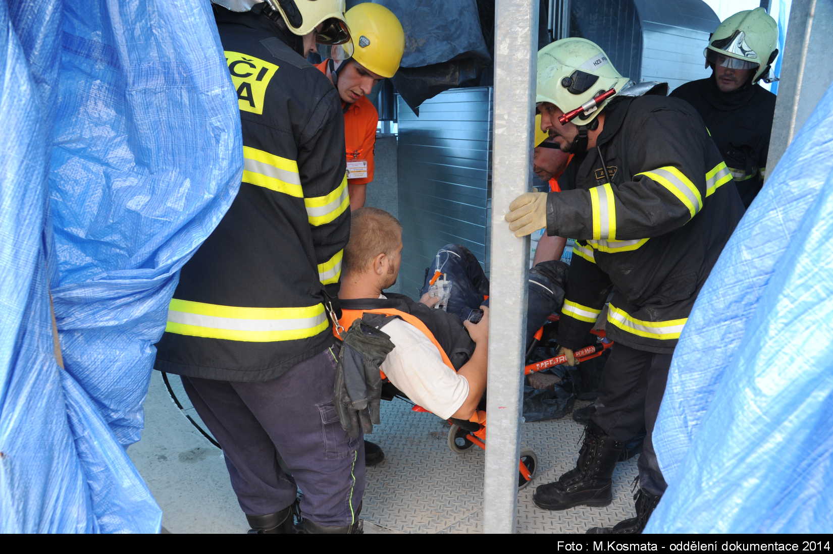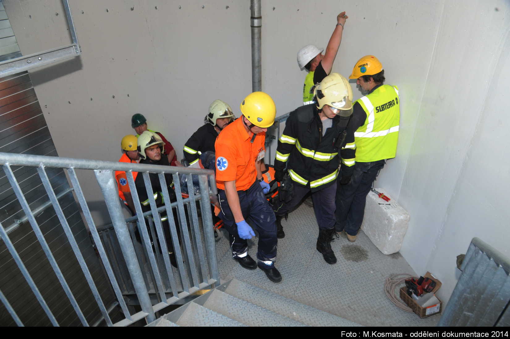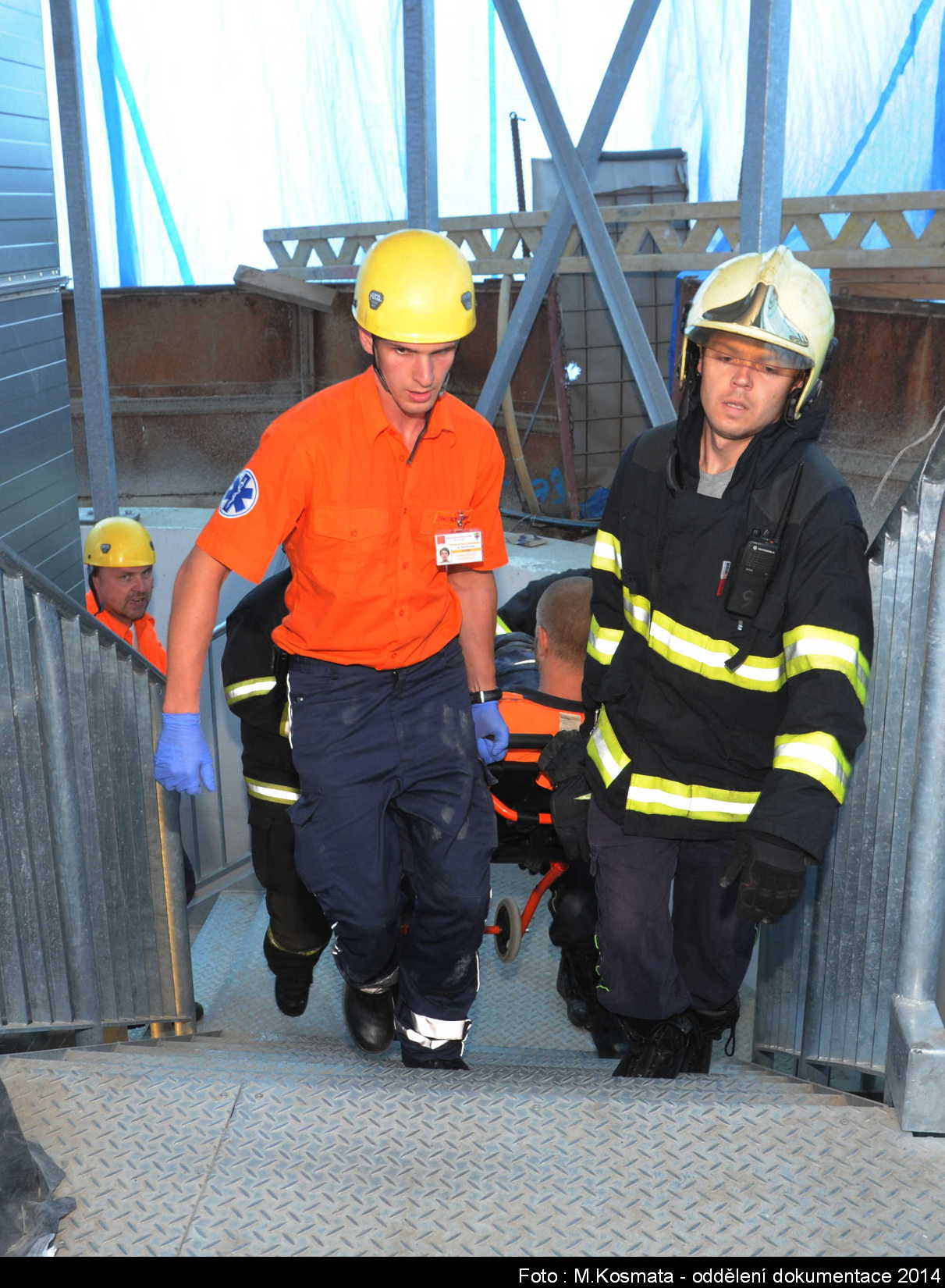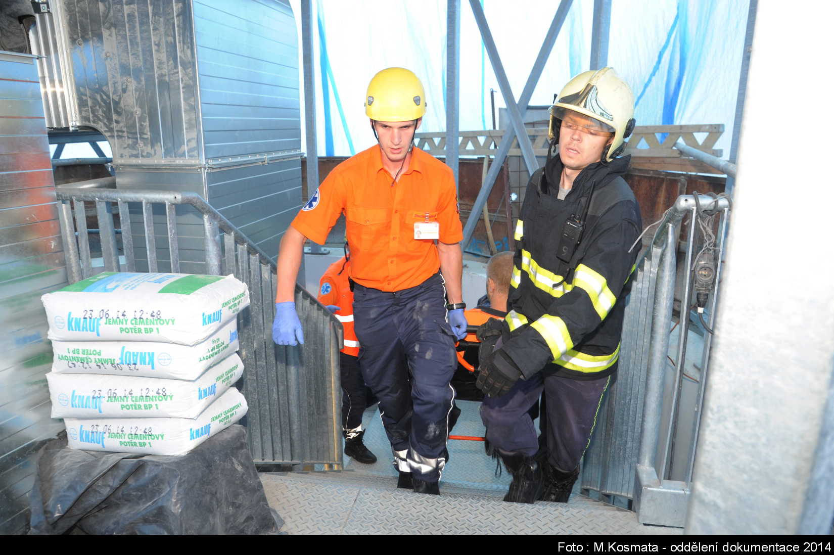 K události vyjeli také hasiči, kteří záchranářům pomohli s transportem zraněné osoby do sanitního vozu. Dělník byl po zaléčení převezen do nemocnice.