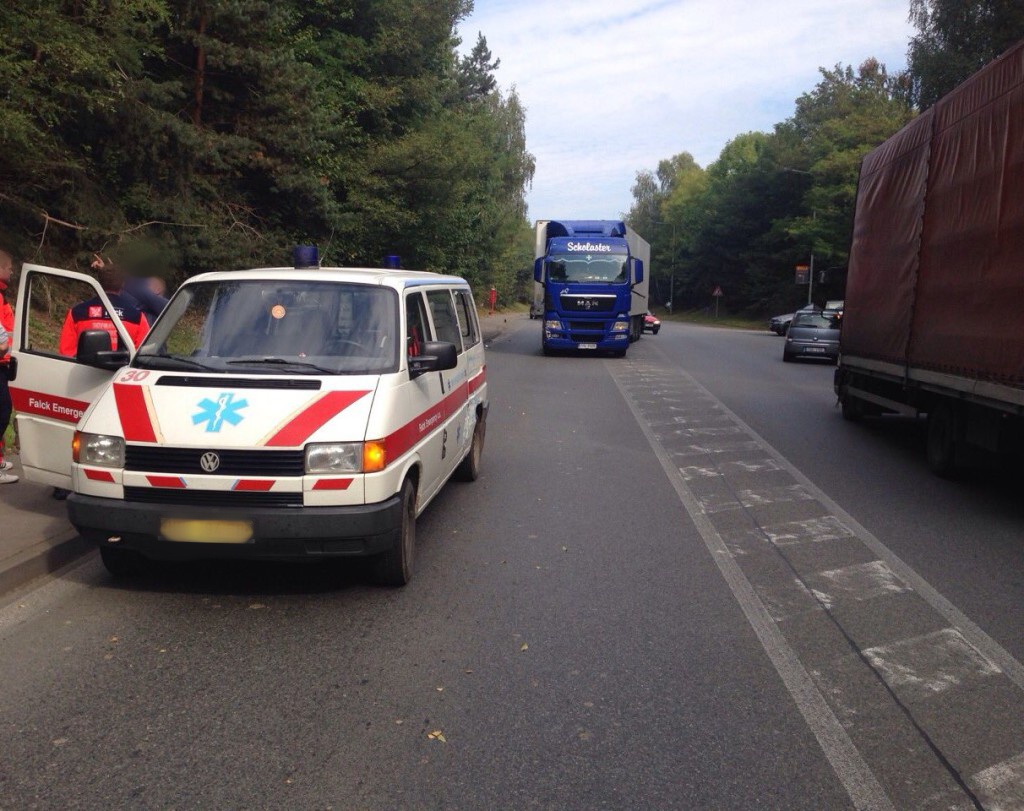 Dne 7. 10. 2014 došlo v Říčanech k dopravní nehodě, při které se střetla převozová sanitka tovární značky Volkswagen Transporter s tahačem kamionu MAN.