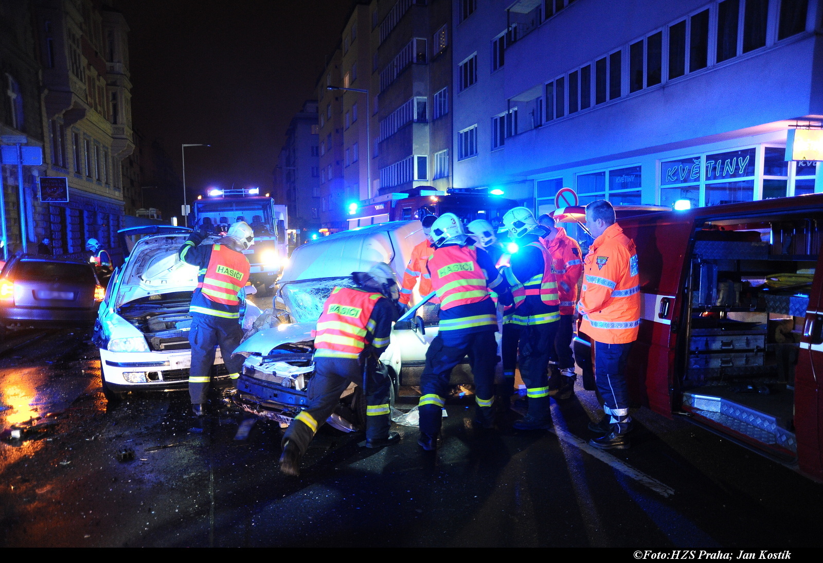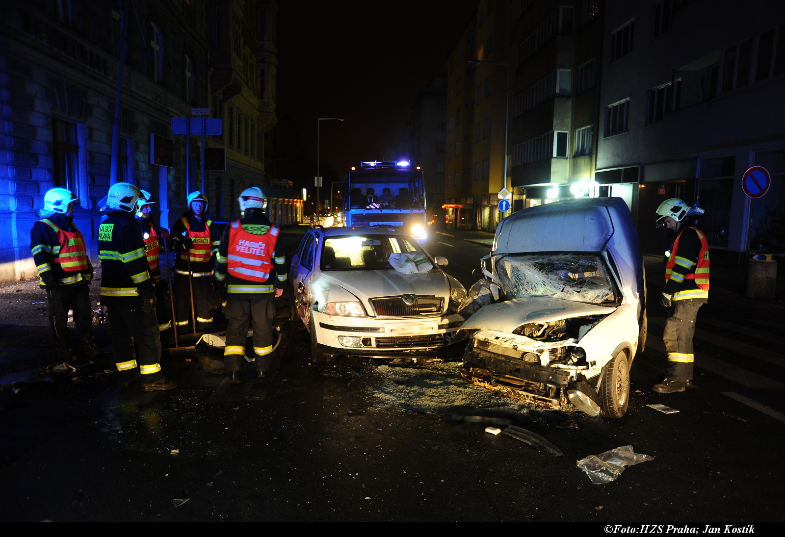 Nehoda dvou osobáků v pražské Veletržní ulici se neobešla bez zranění