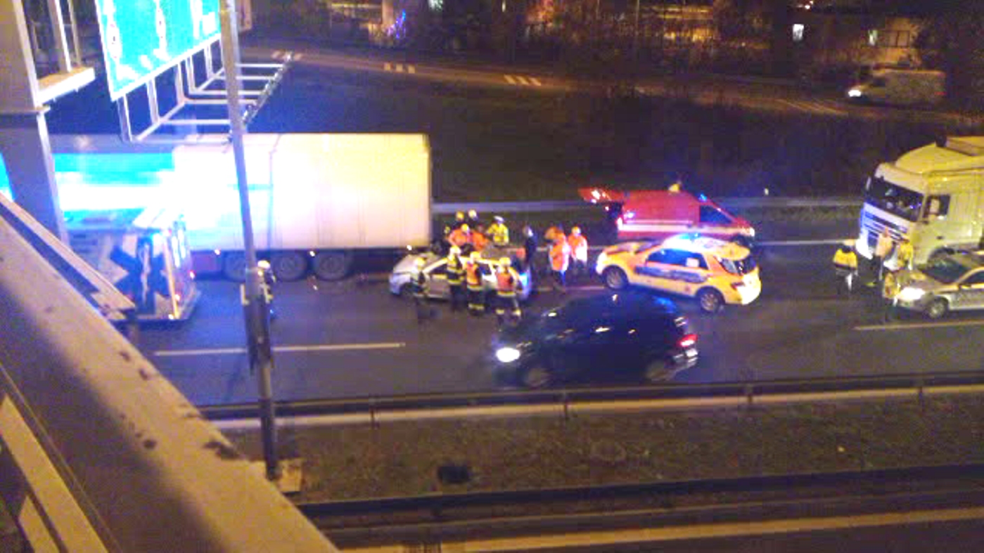 Pražská Jižní spojka byla místem smrtelné nehody osobáku, který narazil do kamionu