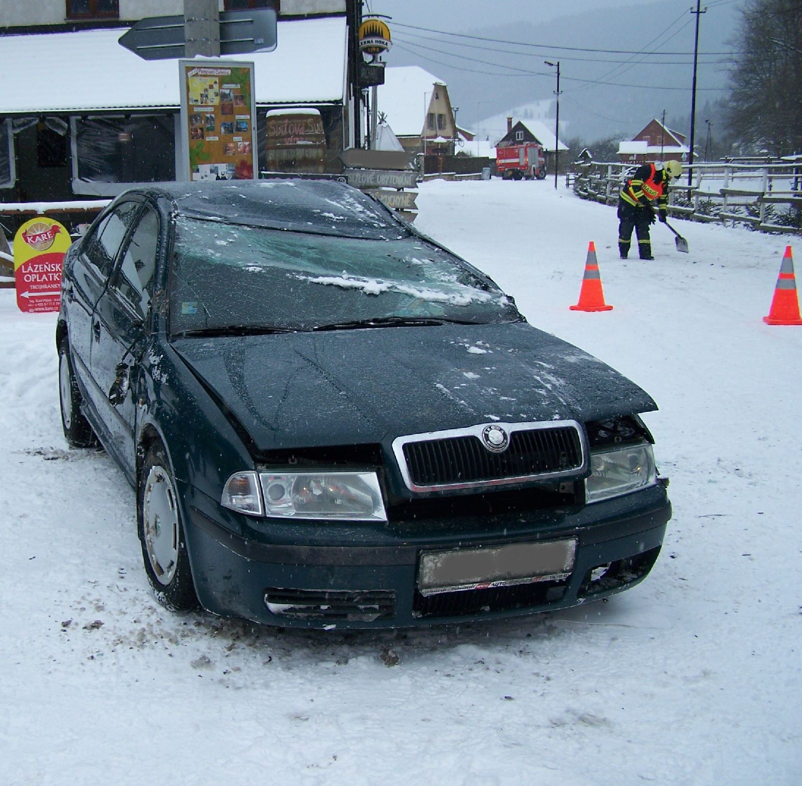 Škodovka skončila ve Velkých Karlovicích převrácená na střechu, řidič byl zraněn