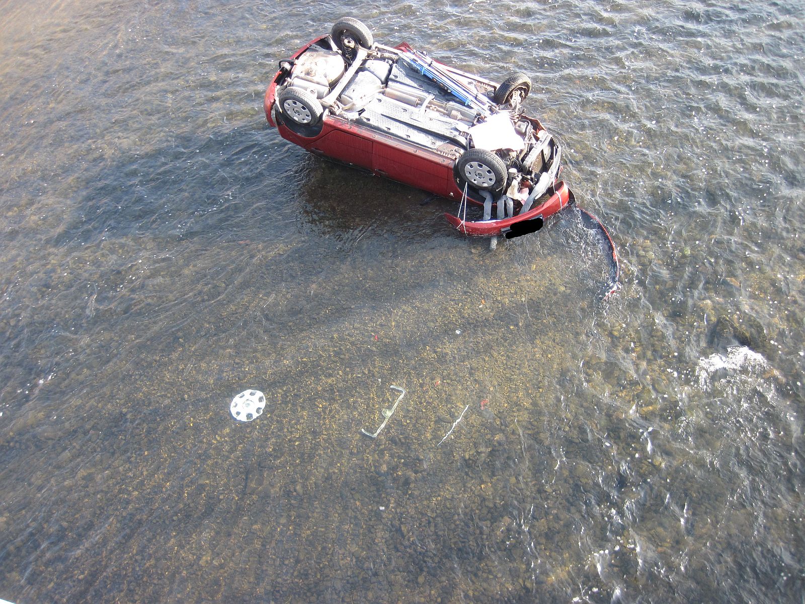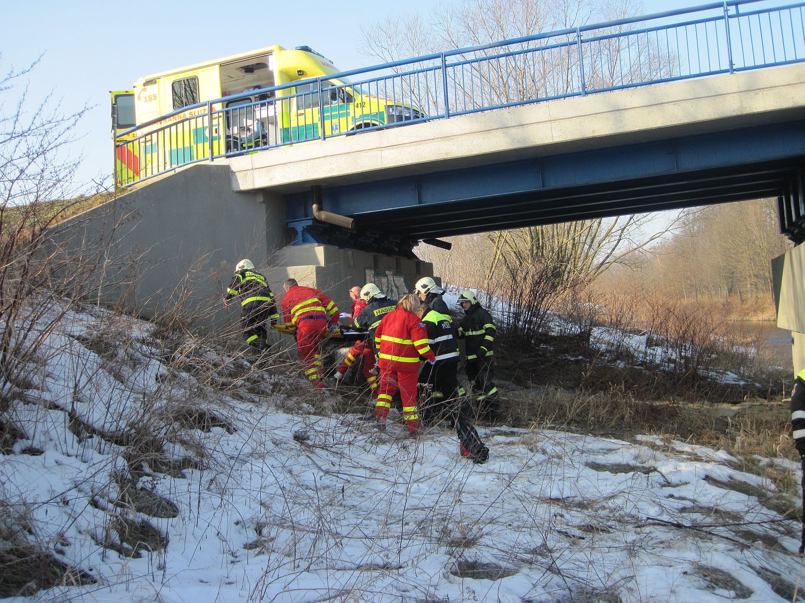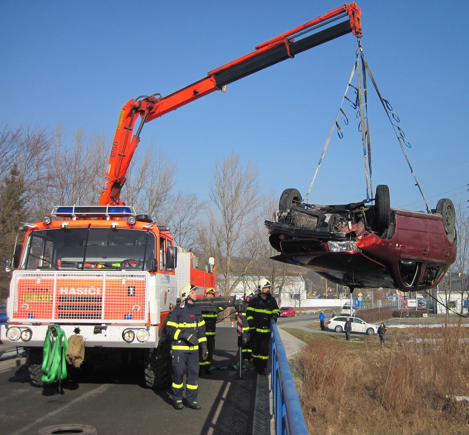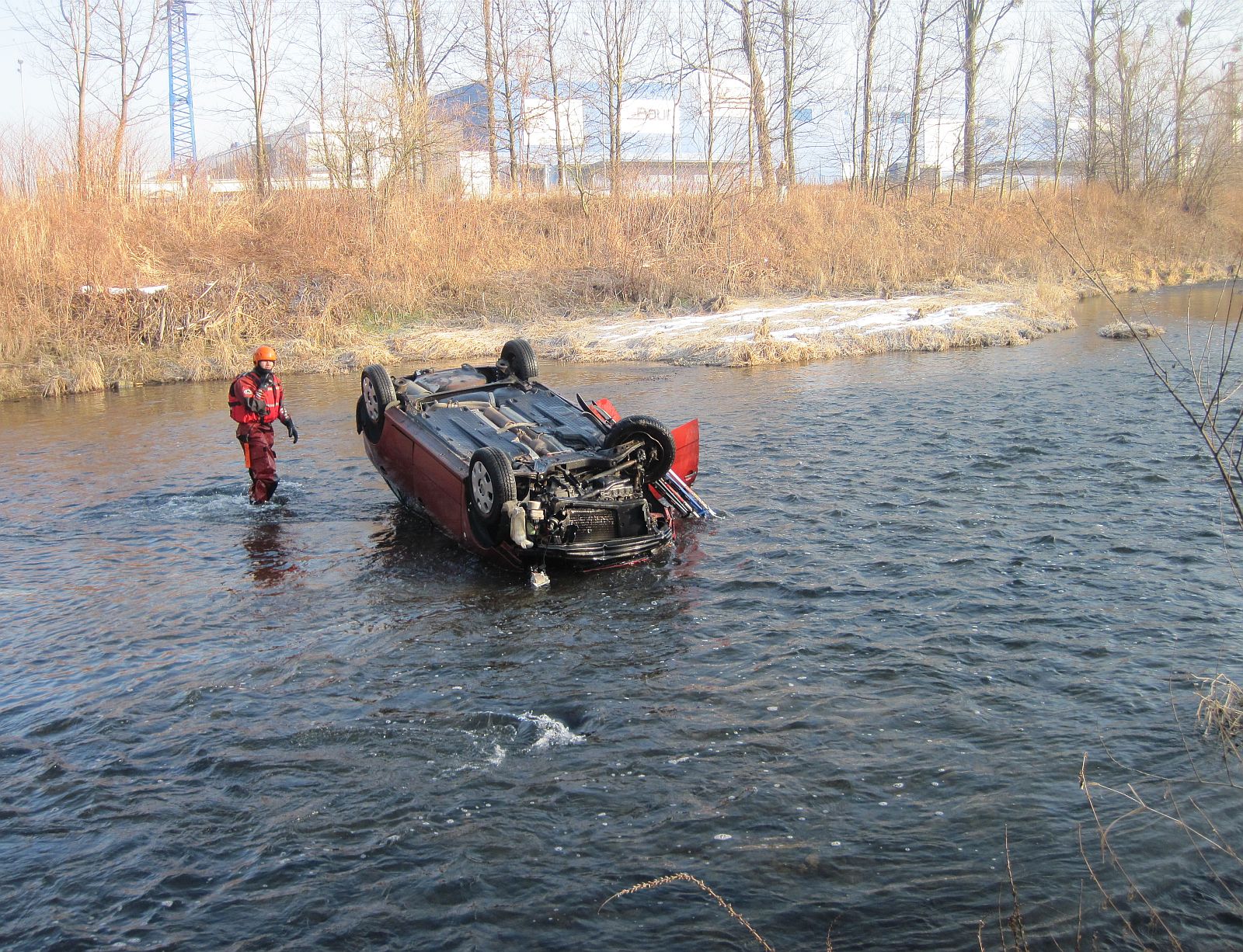 Podle následného upřesnění velitele zásahu se osobní vozidlo zn. Škoda nacházelo v korytu řeky převrácené na střeše. V době nehody byly ve vozidle dvě osoby. Spolujezdkyně se z vozidla dostala bez větších komplikací, řidič zůstal v havarovaném vozidle uvězněn, a to s horní částí těla pod úrovní hladiny.