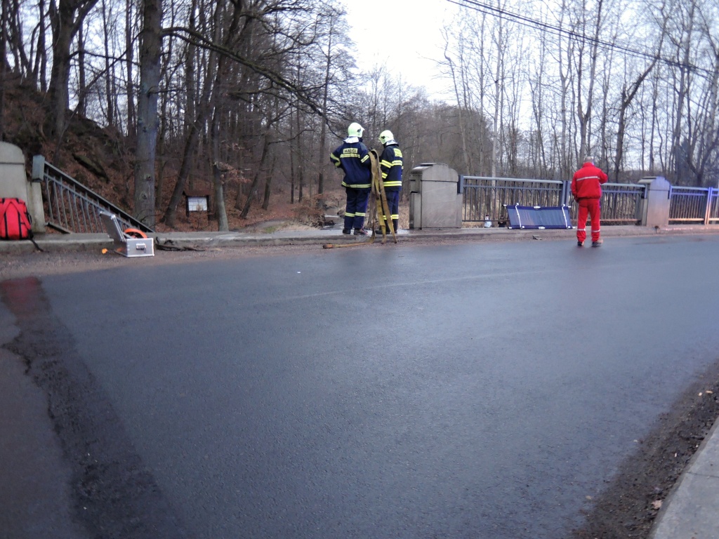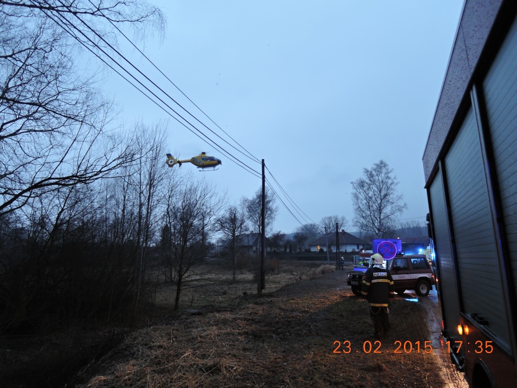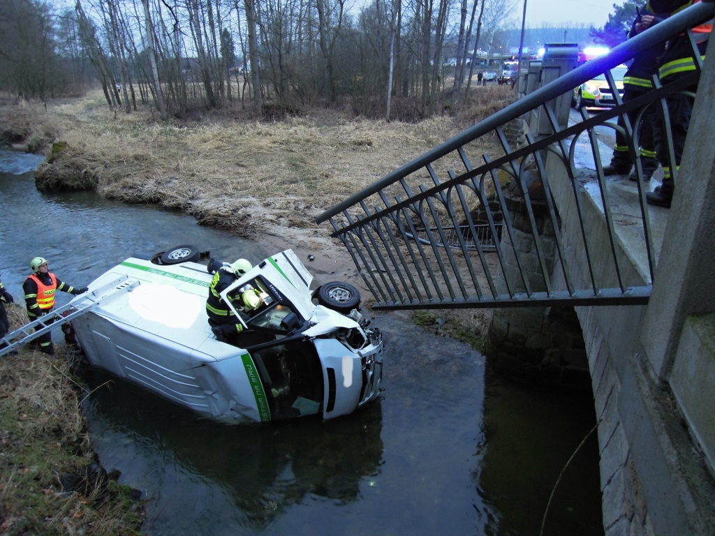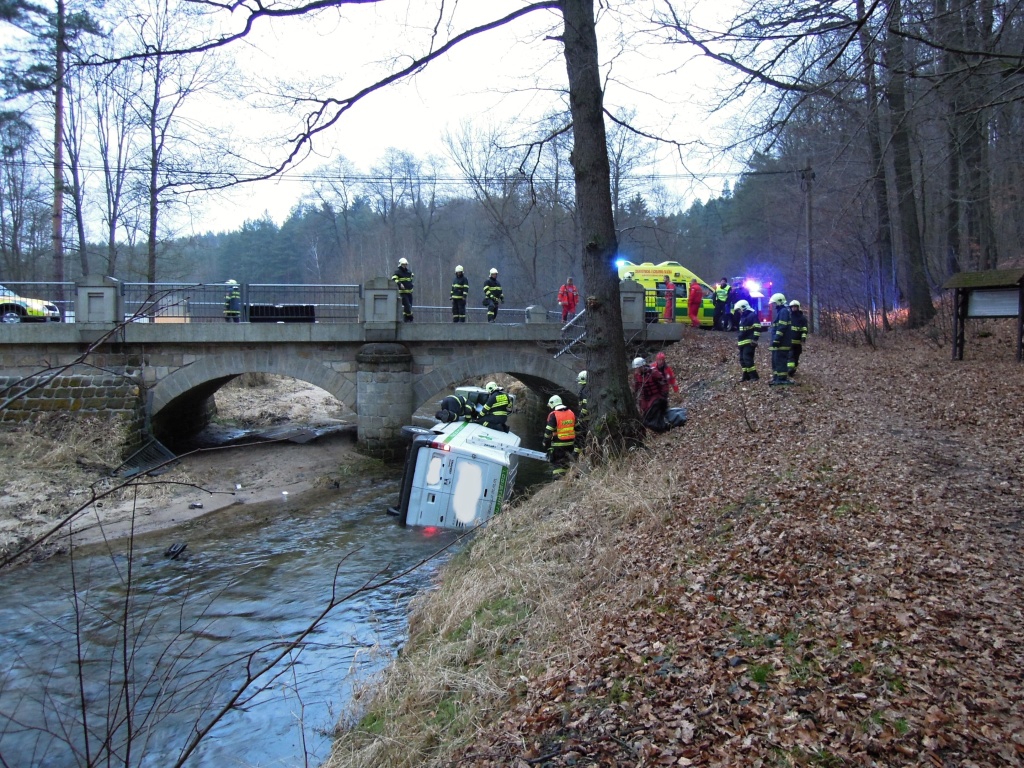 K nehodě Fordu Transit, který spadl na bok do říčky Svitávky v Zákupech (části Kamenice), vyjely dne 23. 2. 2015 v podvečer všechny složky IZS včetně záchranářského vrtulníku.