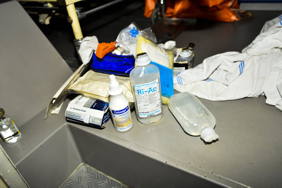 V sanitce XXL stačil napáchat škodu za několik desítek tisíc korun, protože namísto aby zkusil, zdali např. šuplíky nejdou otevřít normálním způsobem, je vypáčil apod. V prostěradle měl zabalený defibrilátor, léky a do spínací skřínky zapalování vrazil nůžky, chtěl s nimi vozidlo nastartovat a odjet, což se mu nepodařilo.