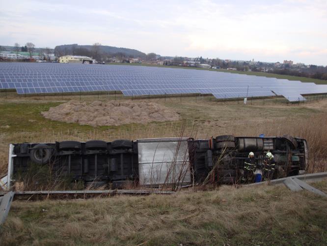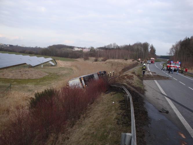 Na místě zůstal po čelním střetu s nákladním automobilem usmrcený řidič osobního vozidla značky Saab. Nákladní automobil poničil při nehodě svodidla, sjel po náspu silnice, převrátil se a zůstal ležet na boku. Řidič kamionu byl naštěstí zraněn pouze lehce a skončil v péči zdravotnické záchranné služby.