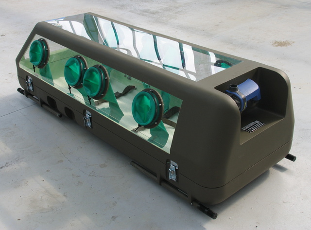 Horní část skříně tvoří odnímatelný nerozbitný průhledový kryt. V zadní části krytu je zavěšena filtroventilační jednotka se dvěma výstupními filtry, které zajišťují, že z přepravního boxu odchází do okolí čistý nekontaminovaný vzduch. V přední části krytu, v blízkosti hlavy ležící osoby, je umístěn filtr zajišťující přísun čistého vzduchu do přepravního boxu. Po stranách průhledového krytu jsou prostupy pro ochranné rukavice. Dva a dva páry rukavic z obou stran umožňují obsluze dostatečnou možnost manipulace s přepravovanou osobou.