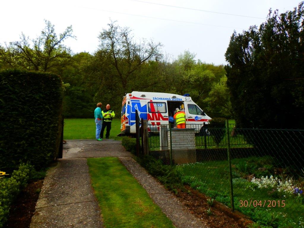 S transportem do sanitky pomohli strážníci MP Černošice. Pacient byl po ošetření lékařem Trans Hospitalu Plus převezen do motolské nemocnice.