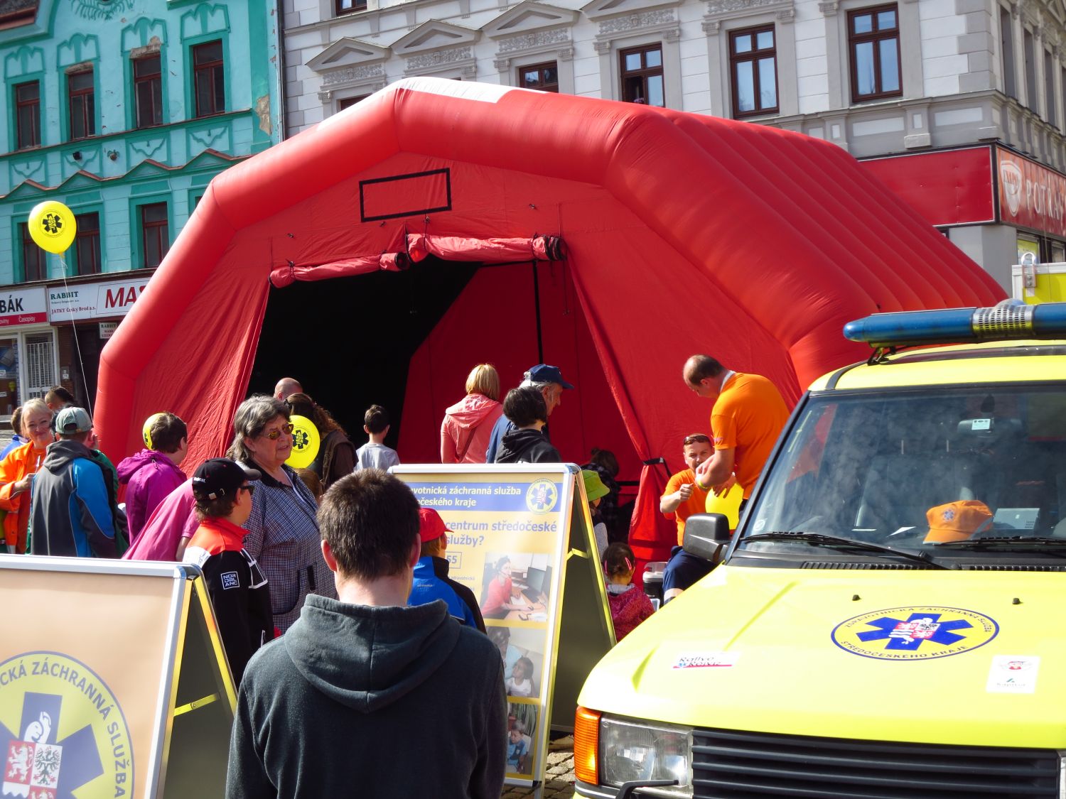 Jako každý rok byly pro návštěvníky připraveny sanitní vozy a červený nafukovací záchranářský stan, který v terénu při mimořádných událostech slouží jako polní nemocnice. Záchranáři v něm zájemcům vysvětlovali pravidla resuscitace a první pomoci.