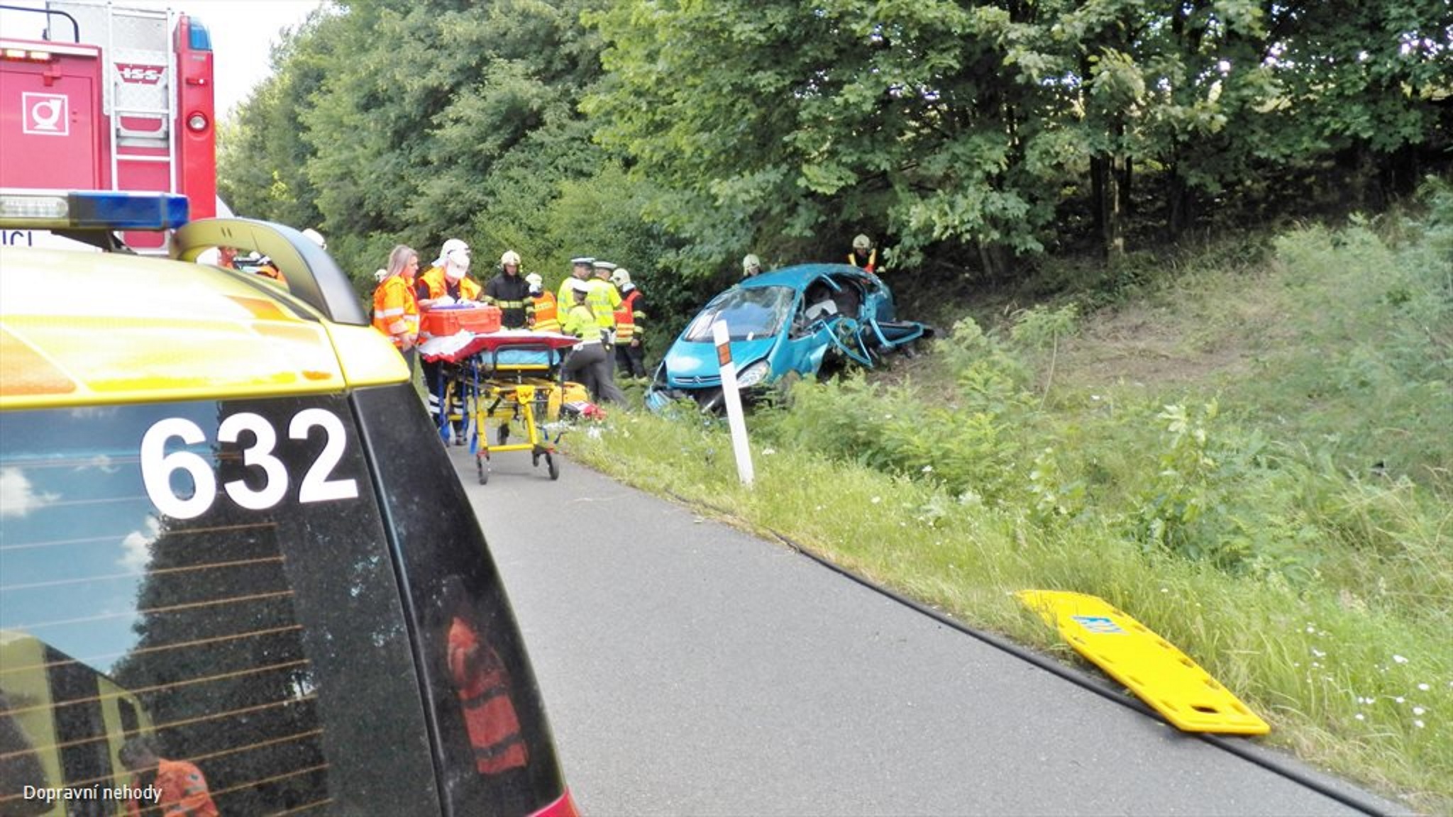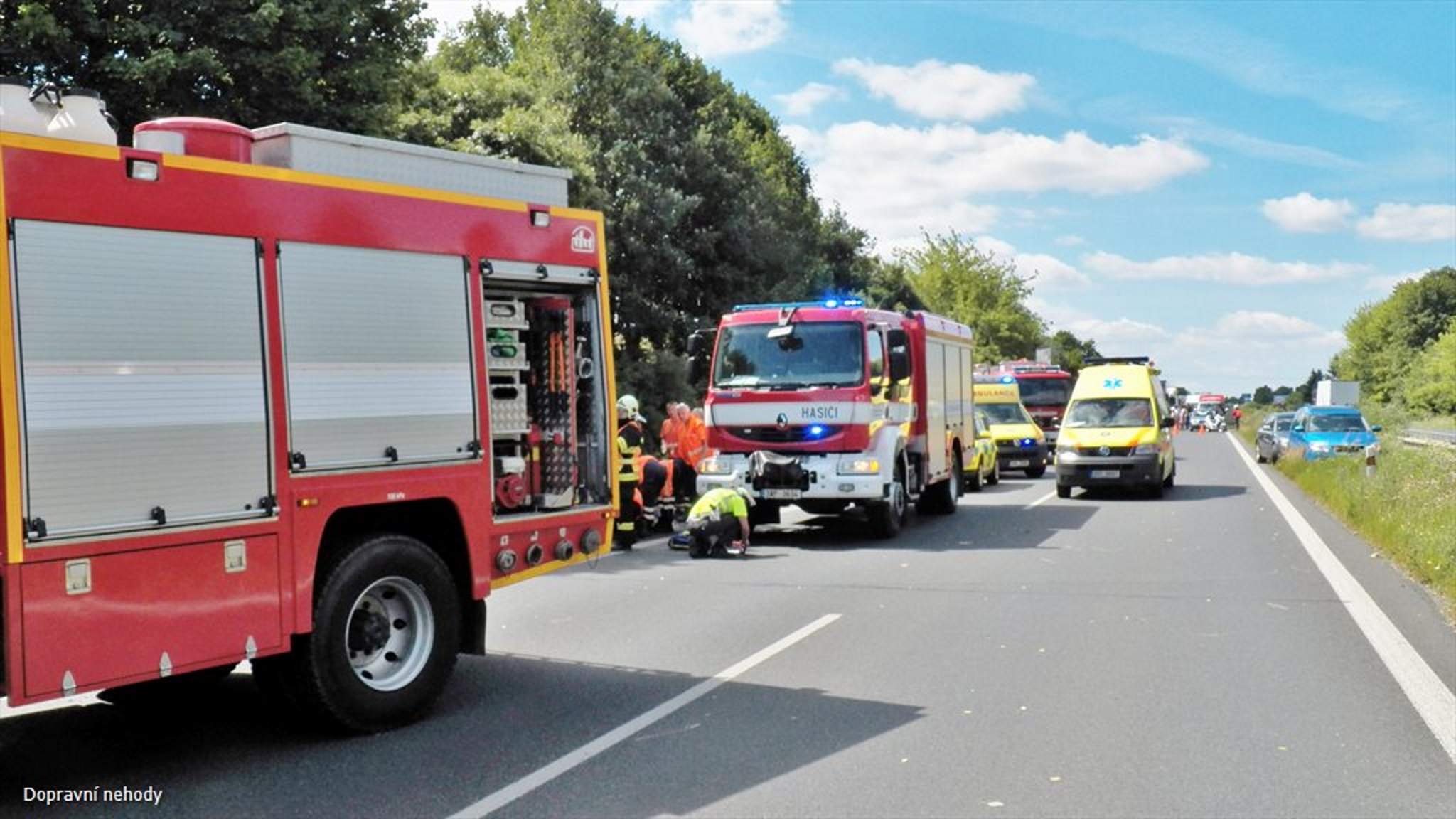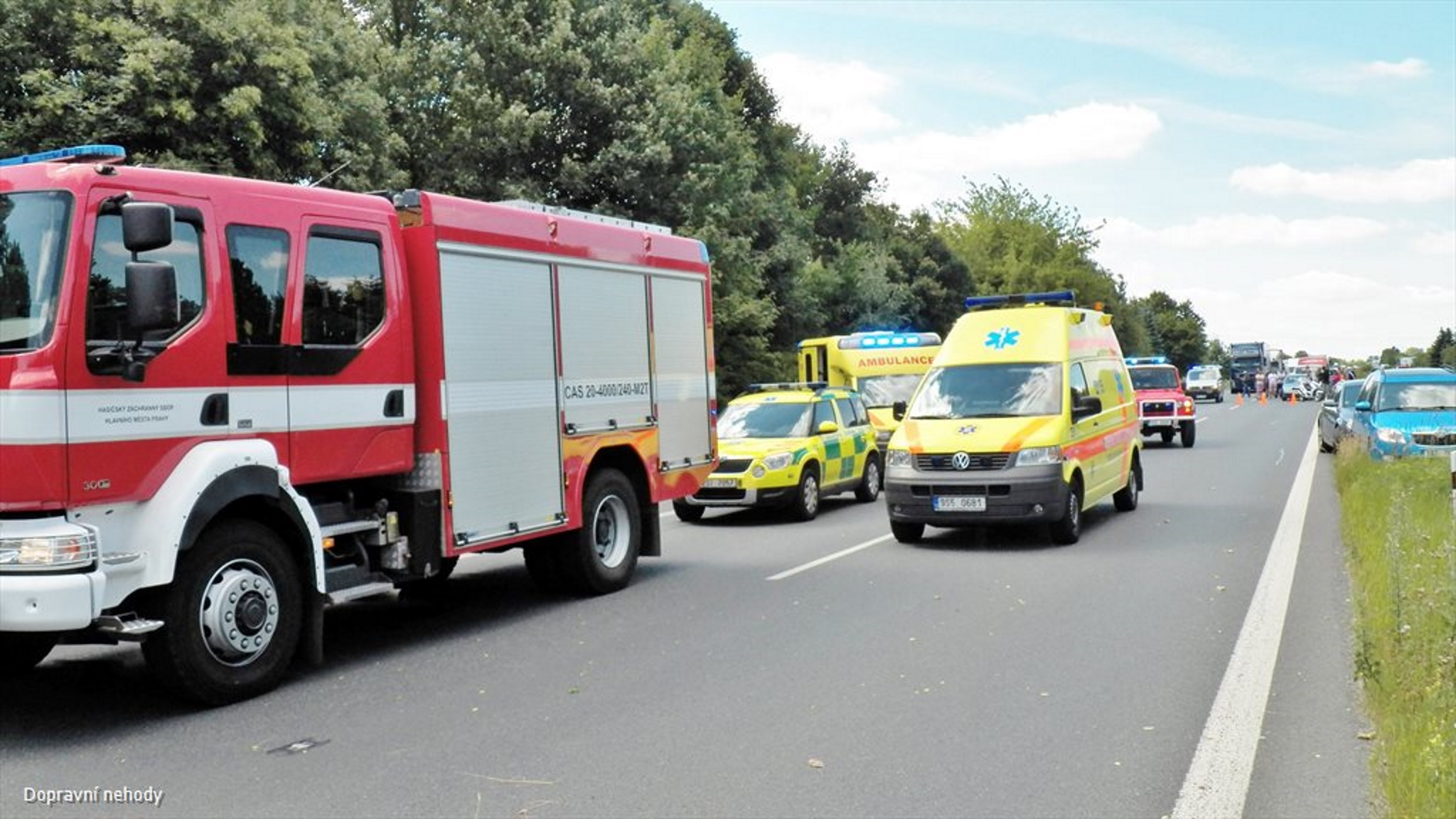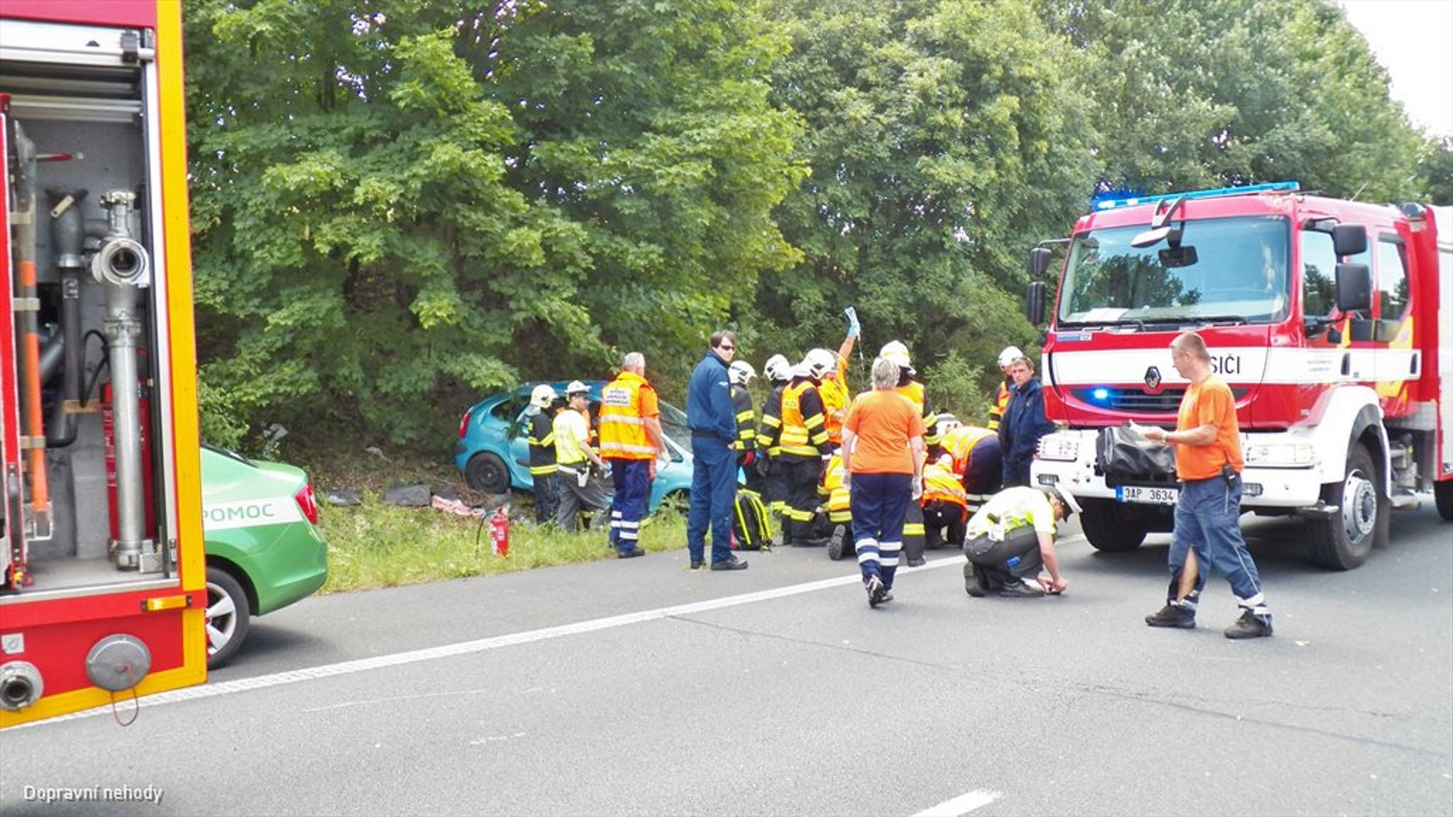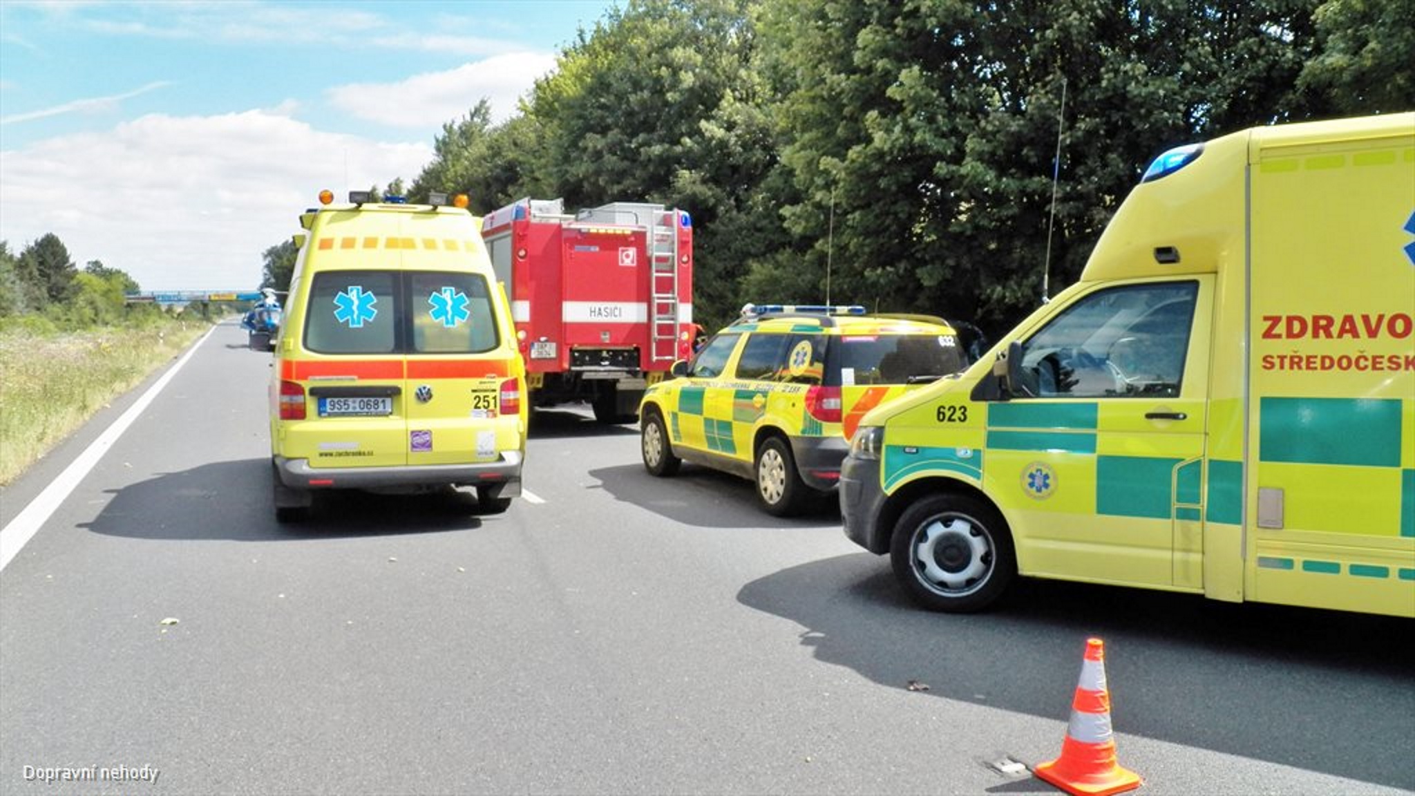 K nahlášené dopravní nehodě jednoho osobního automobilu, který skončil po jízdě na rychlostní komunikaci R10 v úrovni 8km směr Zápy mimo vozovku, vyjely dne 10. 7. 2015 před polednem na pomoc všechny složky IZS.