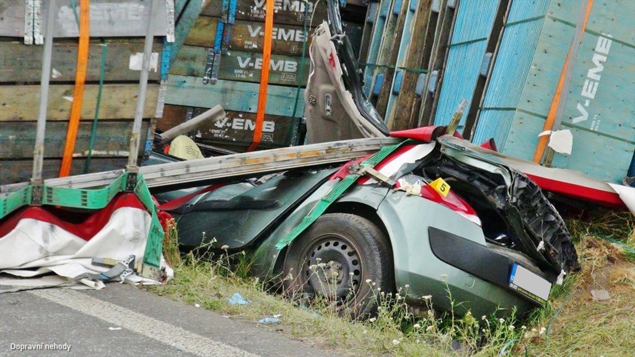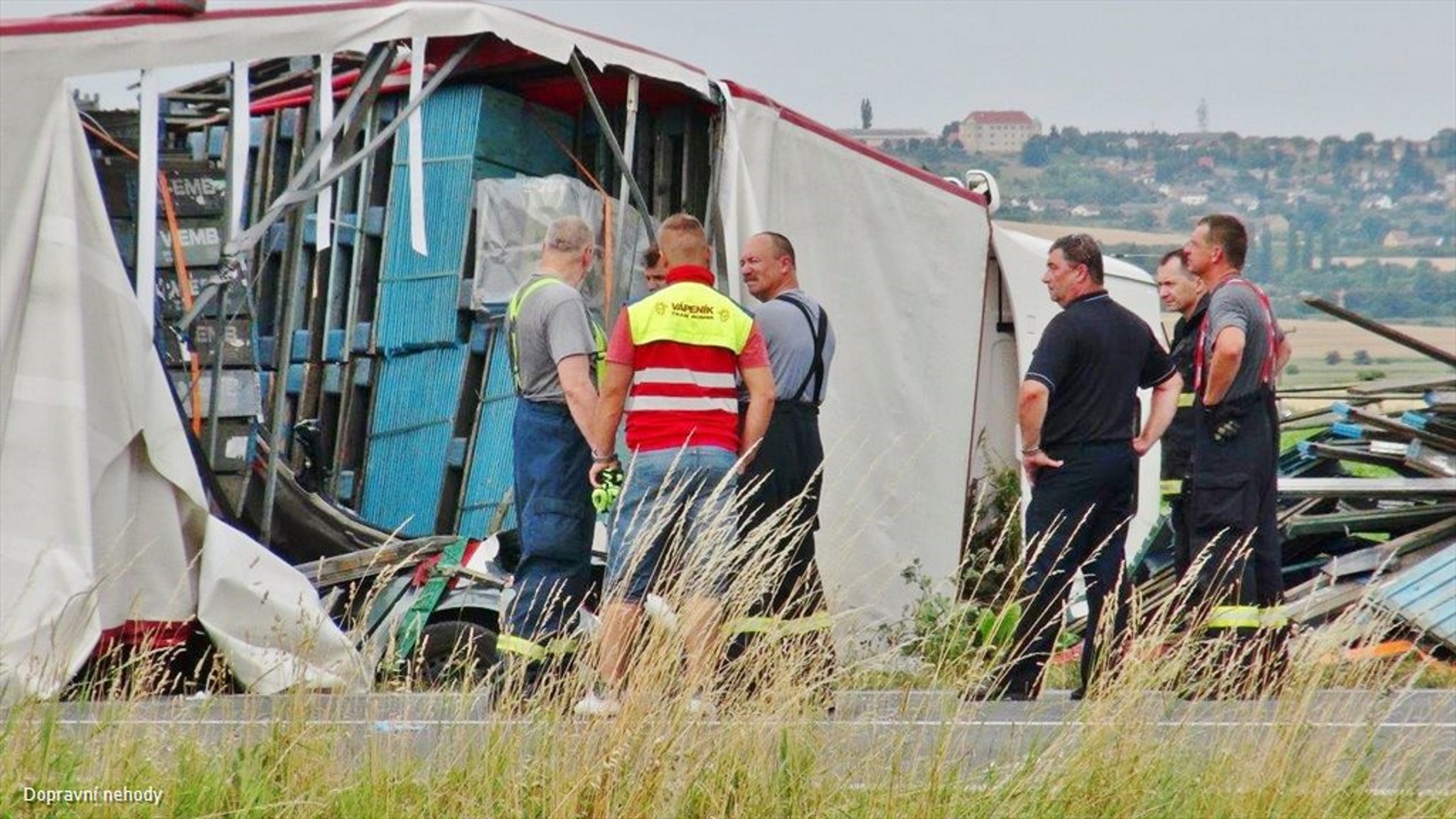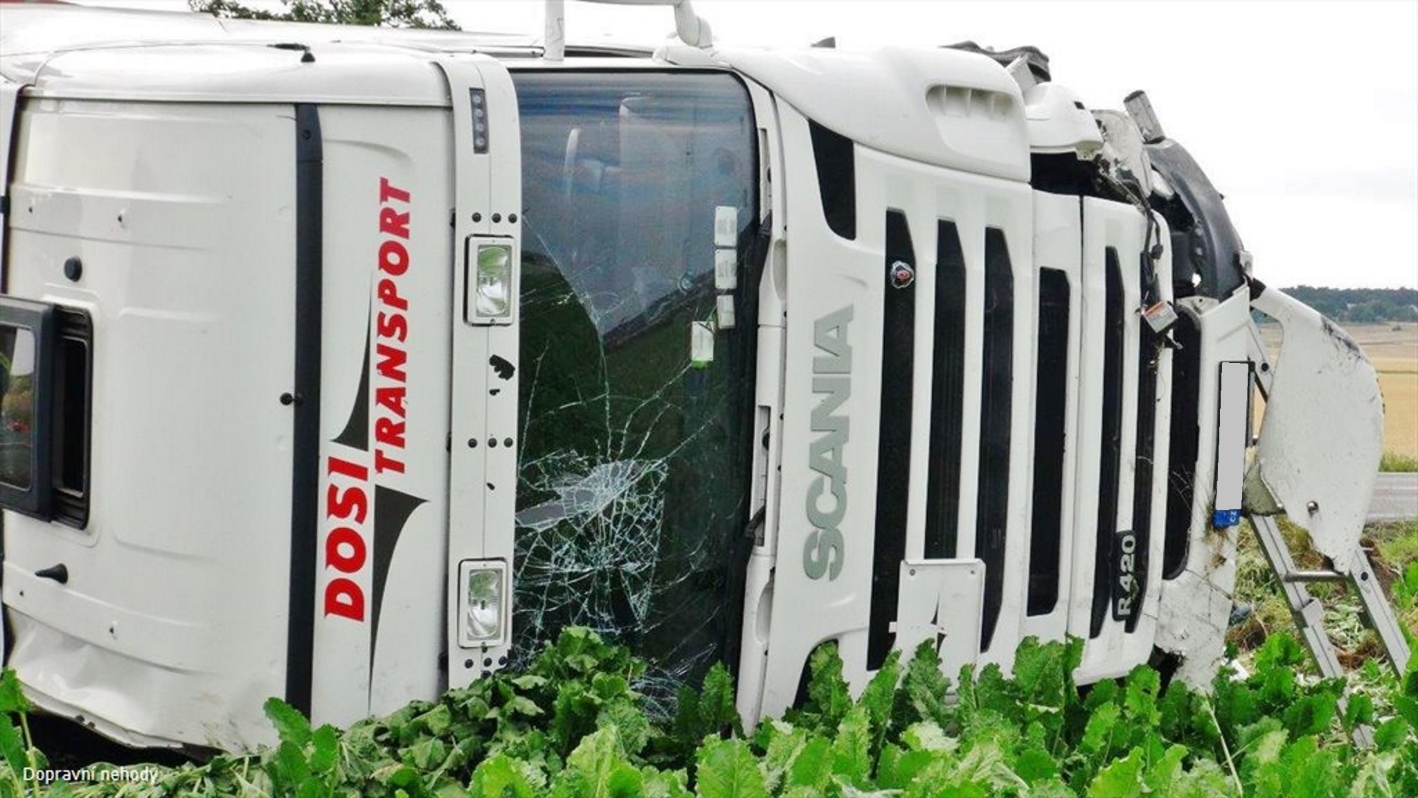 Dnes odpoledne došlo na silnici 1/38 v místě odbočky na obec Němčice na Mladoboleslavsku k těžké dopravní nehodě, při které se zřejmě po defektu pneumatiky převrátilo nákladní auto na osobní.