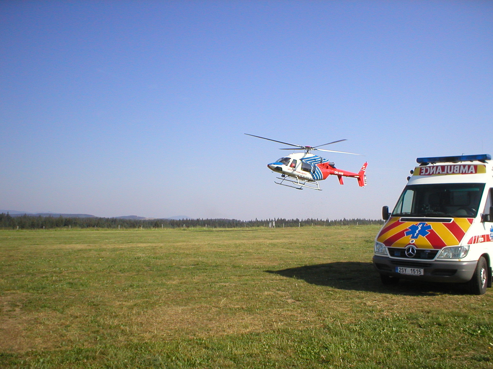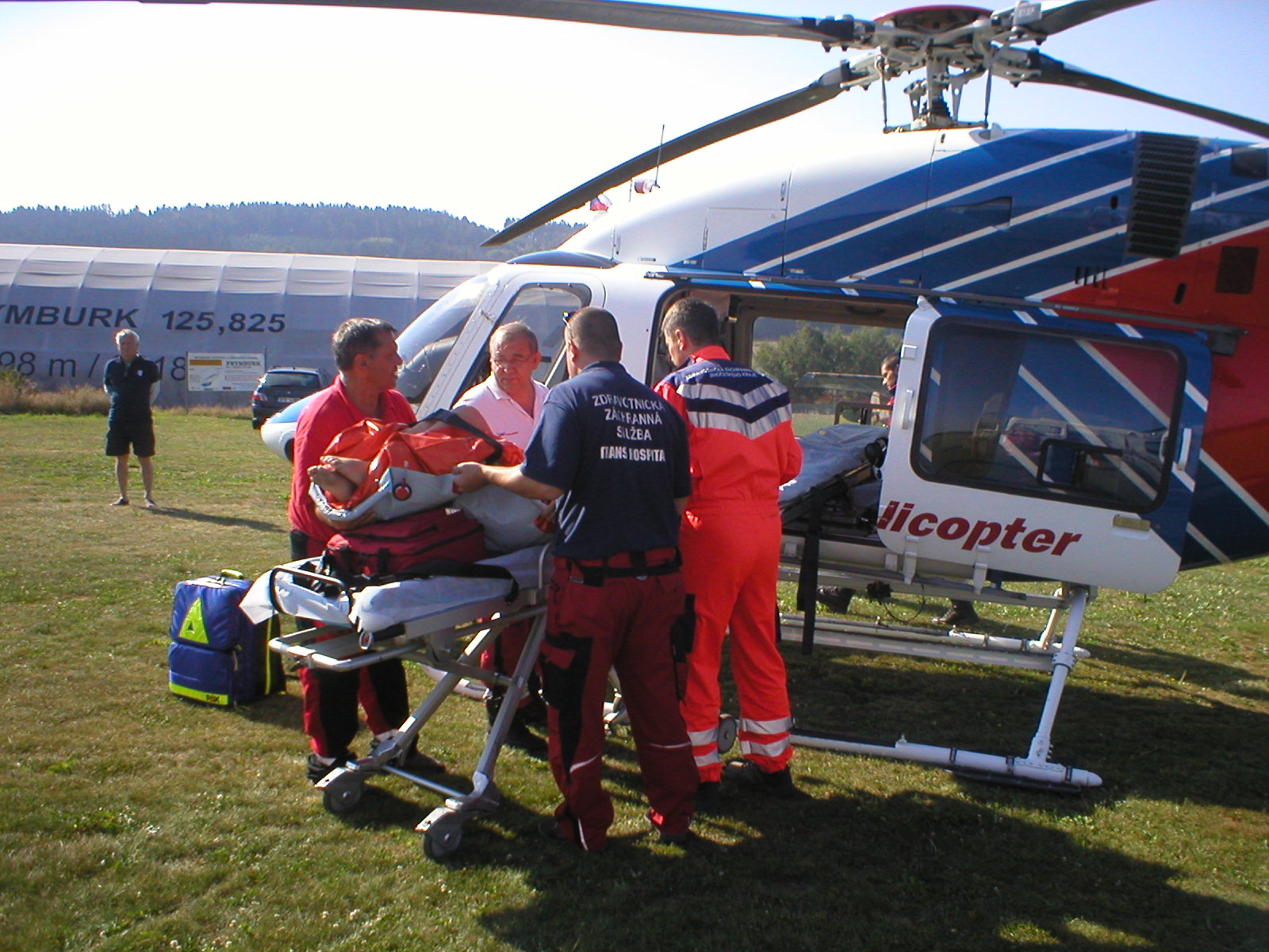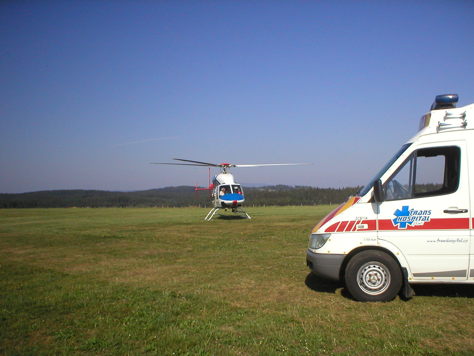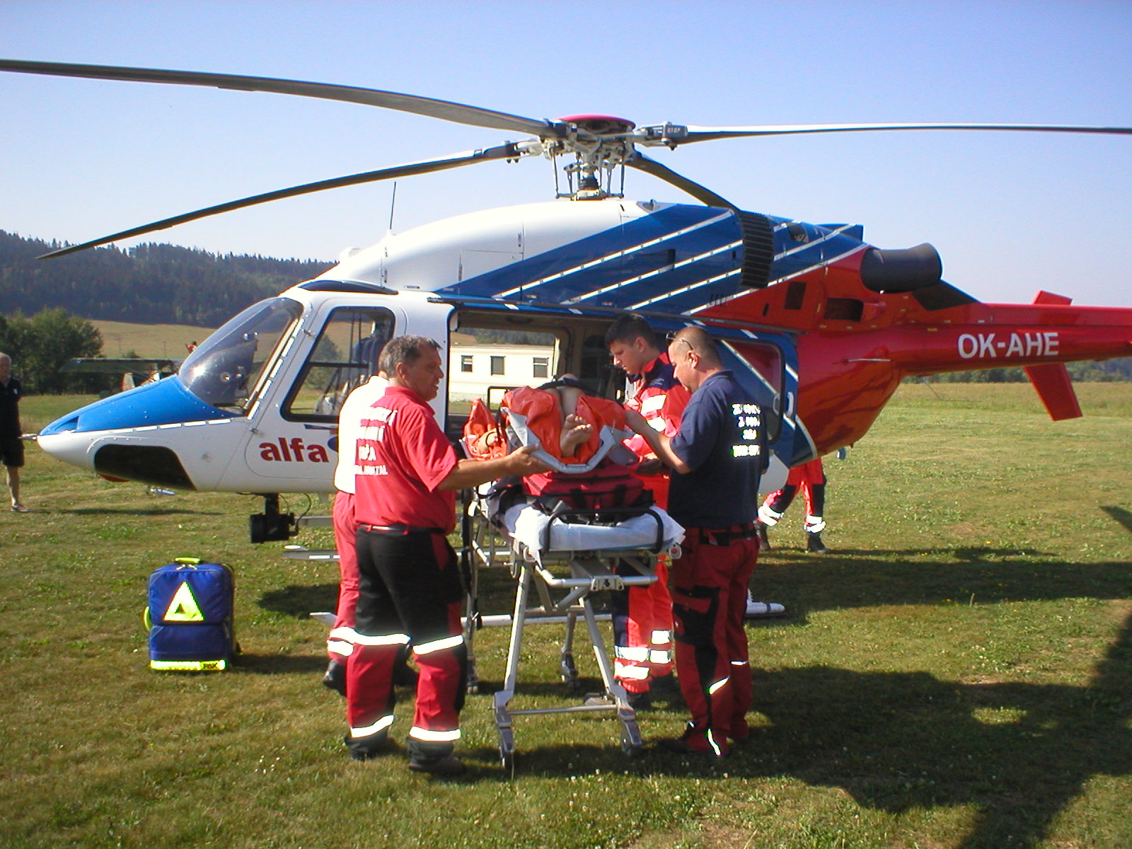Ta po zajištění a zafixování převzala od pozemní posádky ZZS pacientku s podezřením na poranění páteře a pánve, a transportovala jí na traumacentrum nemocnice v Českých Budějovicích.