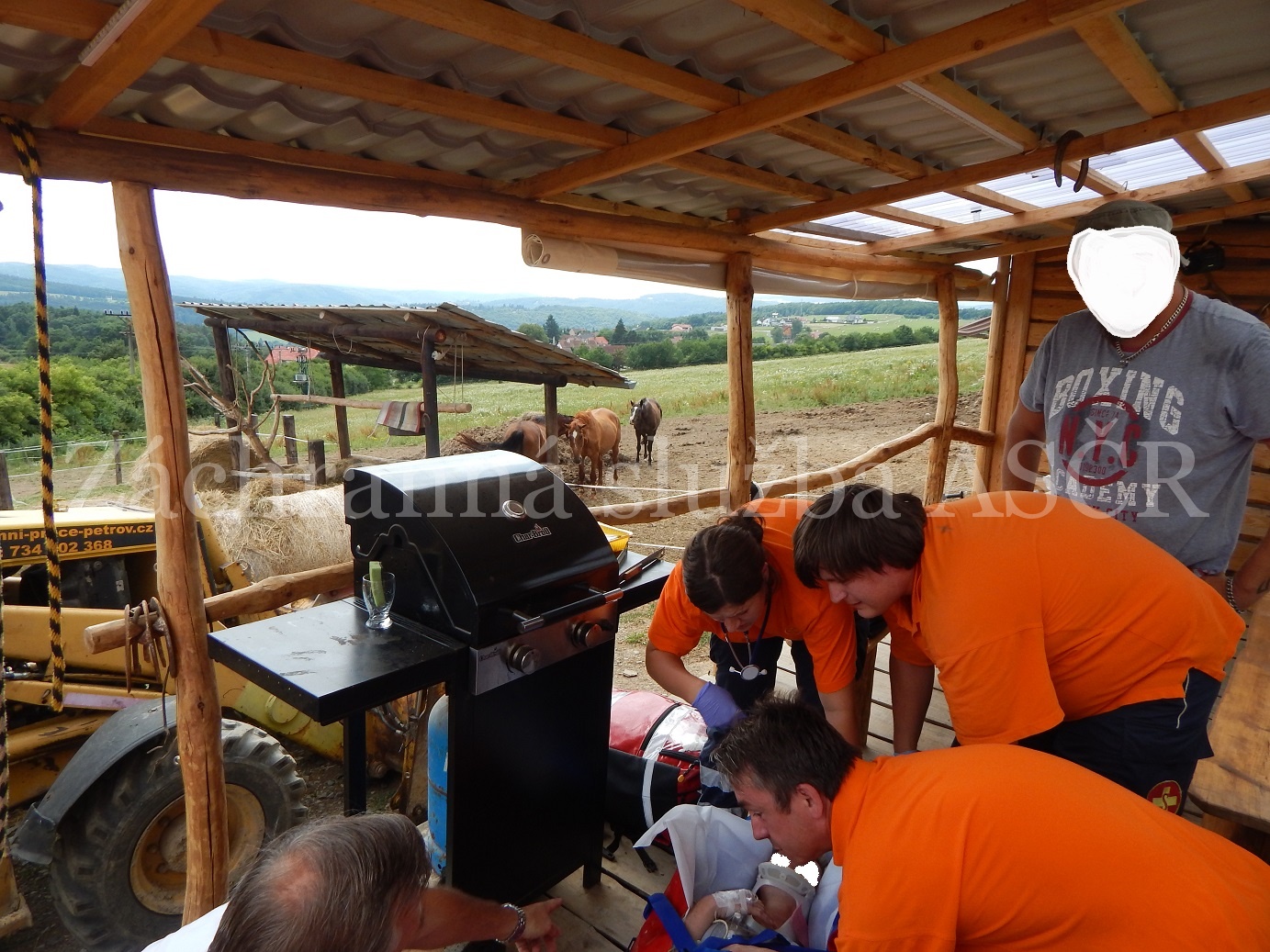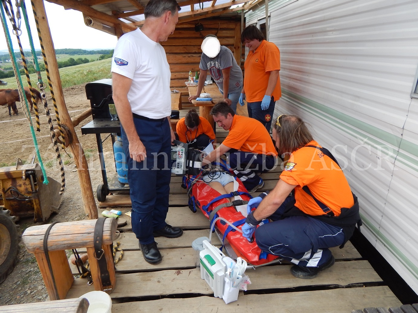 Dne 19. 7. 2015 ve 14 hodin vyjížděla posádka RZP z Davle a inspektor provozu ZS ASČR k hlášenému úrazu hlavy, ke kterému došlo následkem kopnutí koněm u mladé ženy do obce Petrov, okres Praha západ.