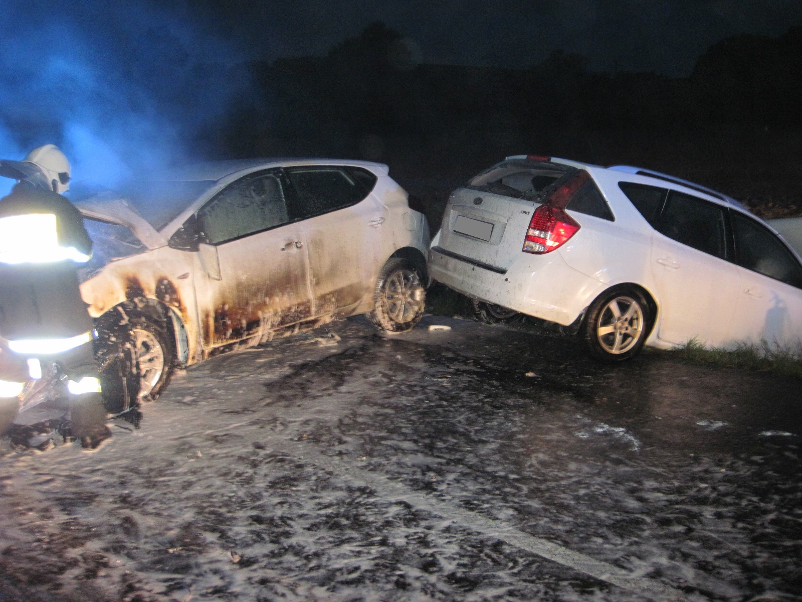 Požár vozidel hasiči likvidovali jedním vysokotlakým proudem a několika práškovými hasicími přístroji.