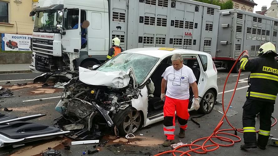 K nehodě osobního a nákladního automobilu vyjížděli v úterý 25. srpna v 11.22 hodin profesionální i dobrovolní hasiči z Vysokého Mýta.