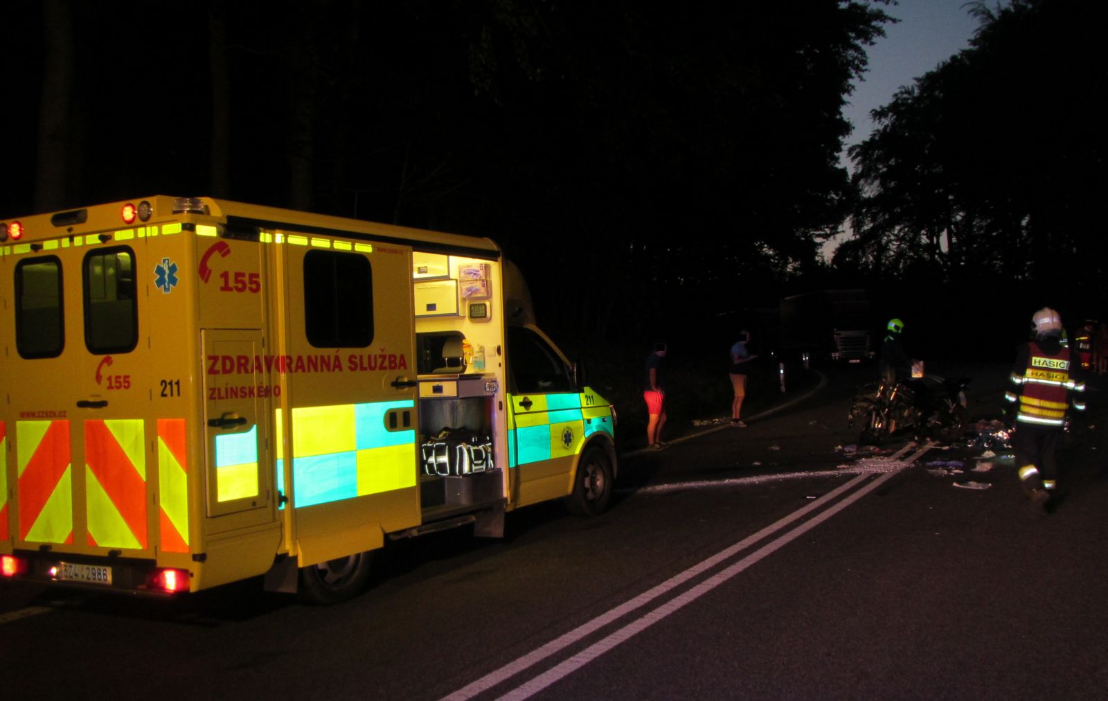 Zranění motorkáři byli následně transportováni vrtulníky letecké záchranné služby k dalšímu ošetření do nemocnic. Jeden z vrtulníků přistál poblíž místa událostí, druhý v nedalekých Kunovicích.