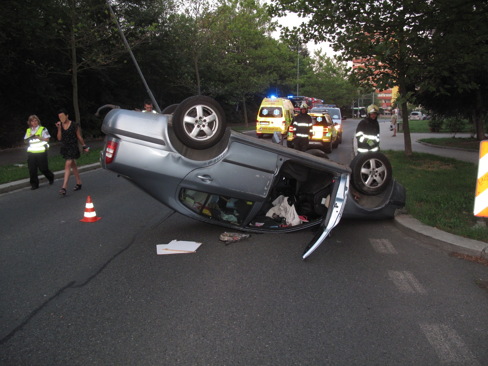 V Plzni se převrátil osobák na střechu, zraněna v něm byla jedna osoba