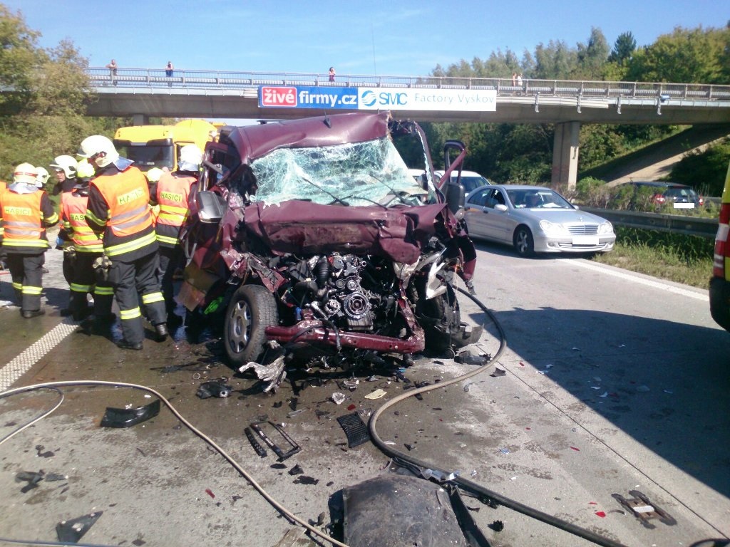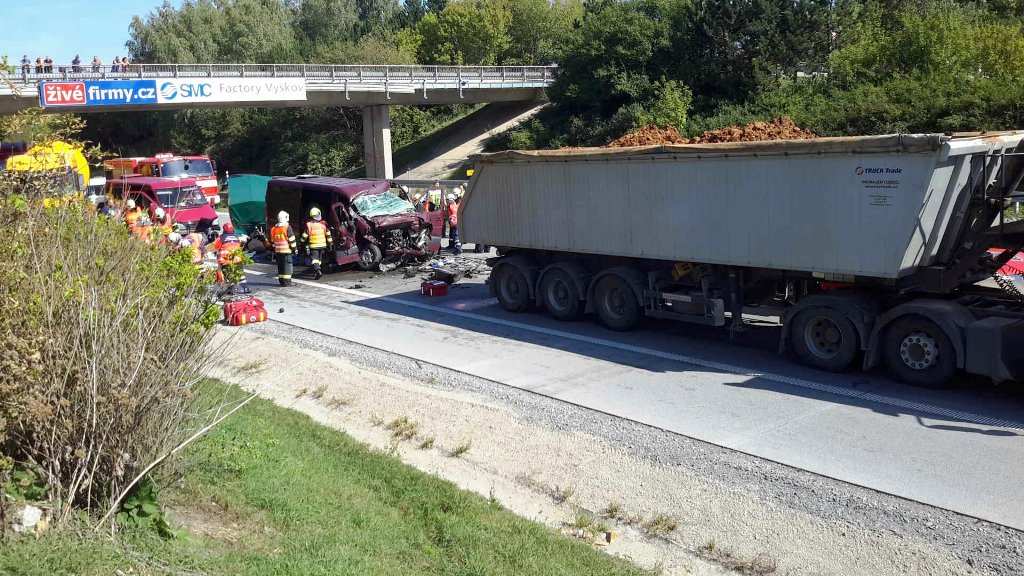 Na 219. km dálnice D1 ve směru na Brno vyjížděly dnes ve 13. hod. jednotky k tragické dopravní nehodě dodávky s přívěsem a nákladního automobilu. V dodávce cestovalo celkem 9 osob. Hasiči museli zraněné vyprošťovat. Celkem pět cestujících utrpělo při nehodě zranění neslučitelná se životem. Tři zraněné převezla k dalšímu ošetření Letecká záchranná služba a posádky ZZS. Jeden zraněný zůstal po ošetření na místě.