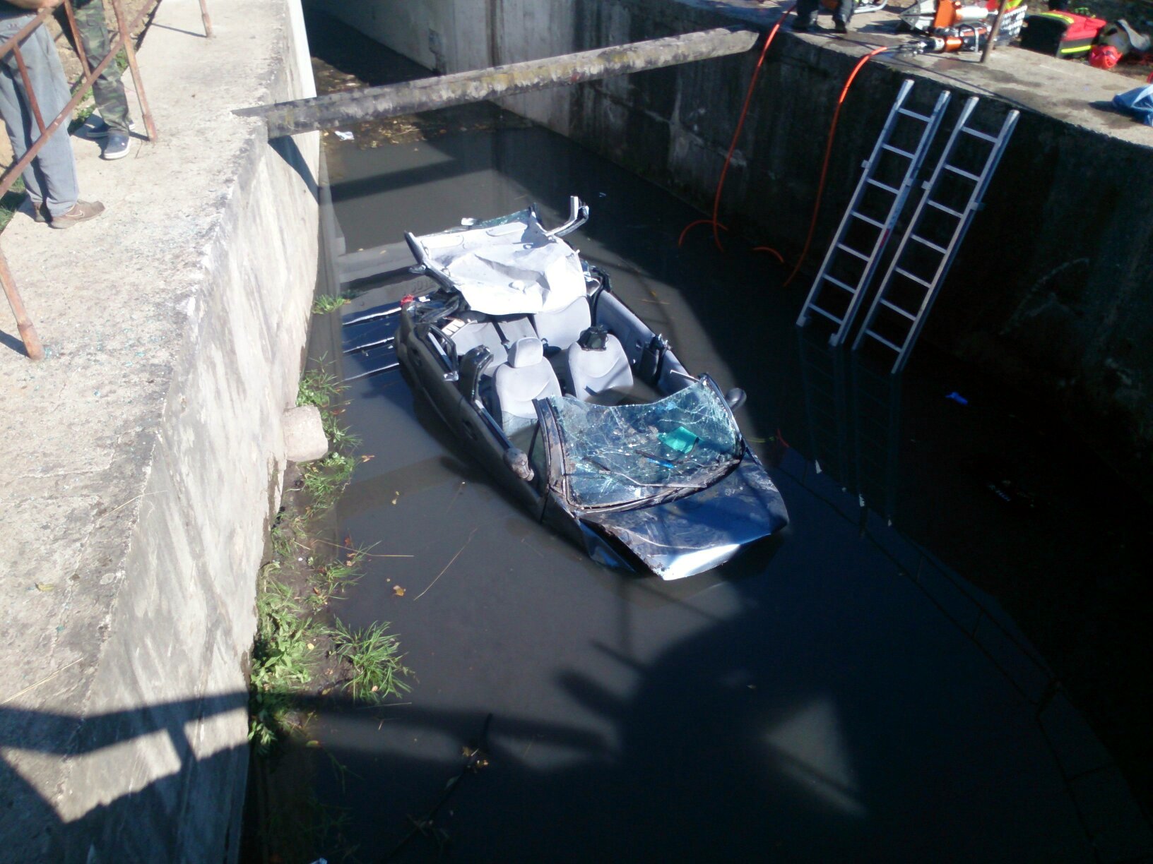 Hasiči v Brně vyprošťovali řidiče i jeho vůz po pádu do potoka