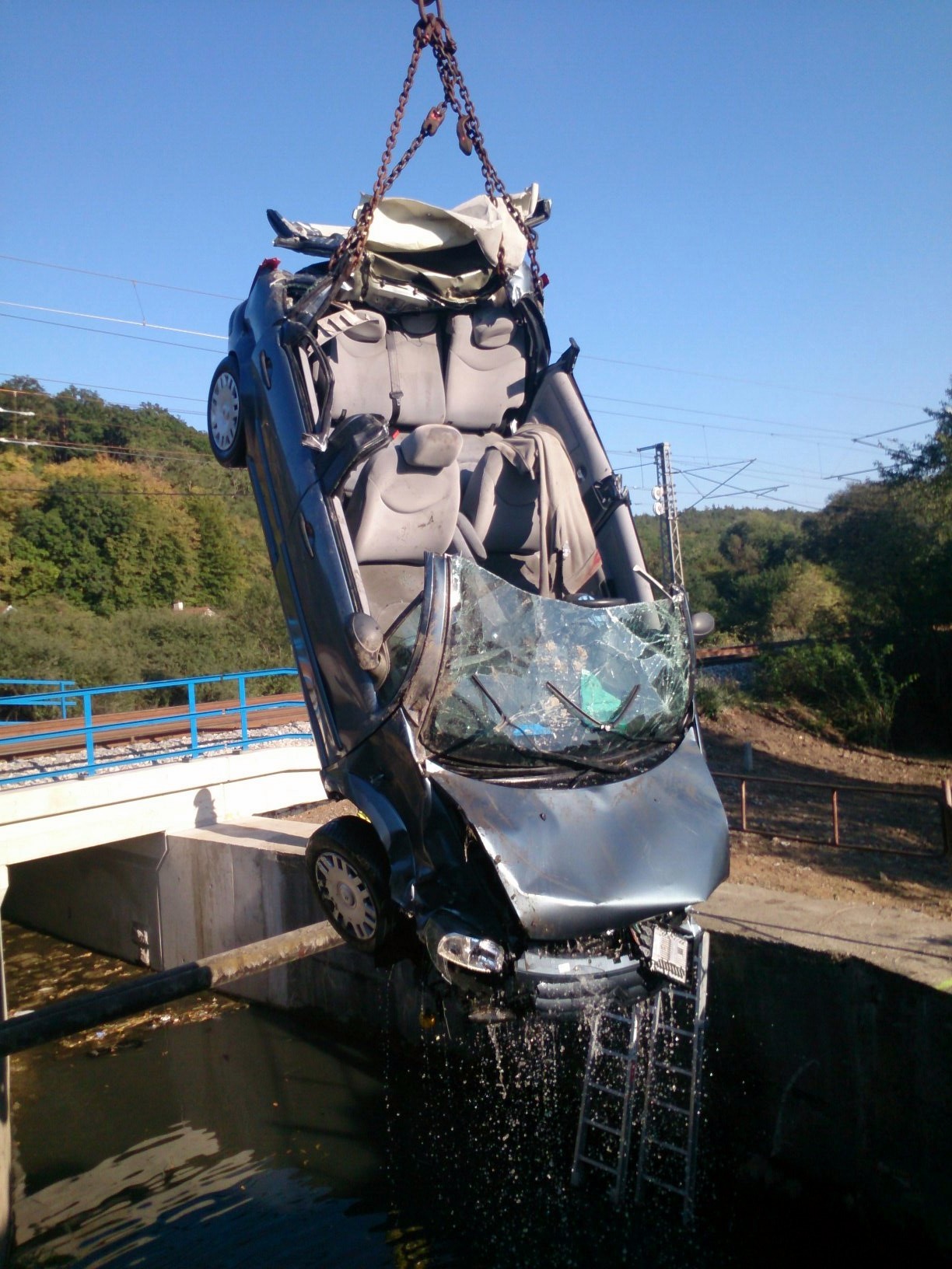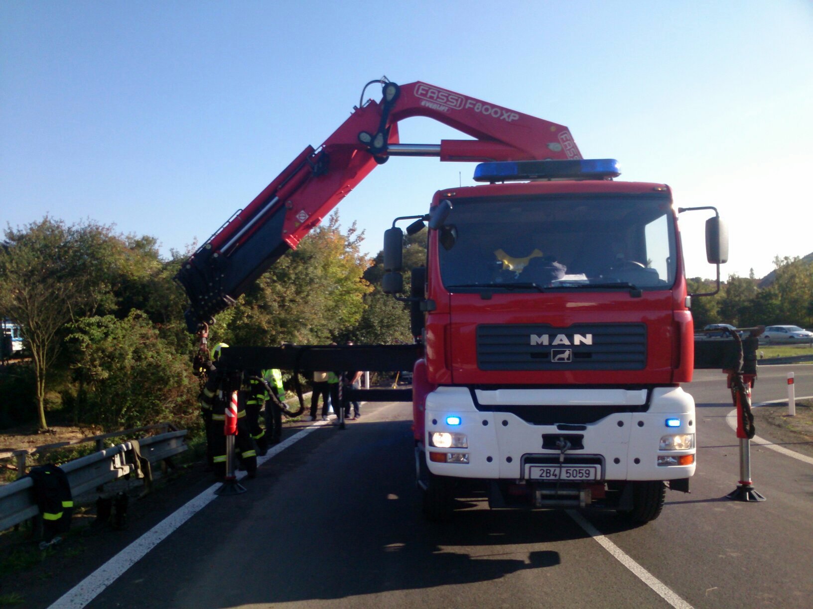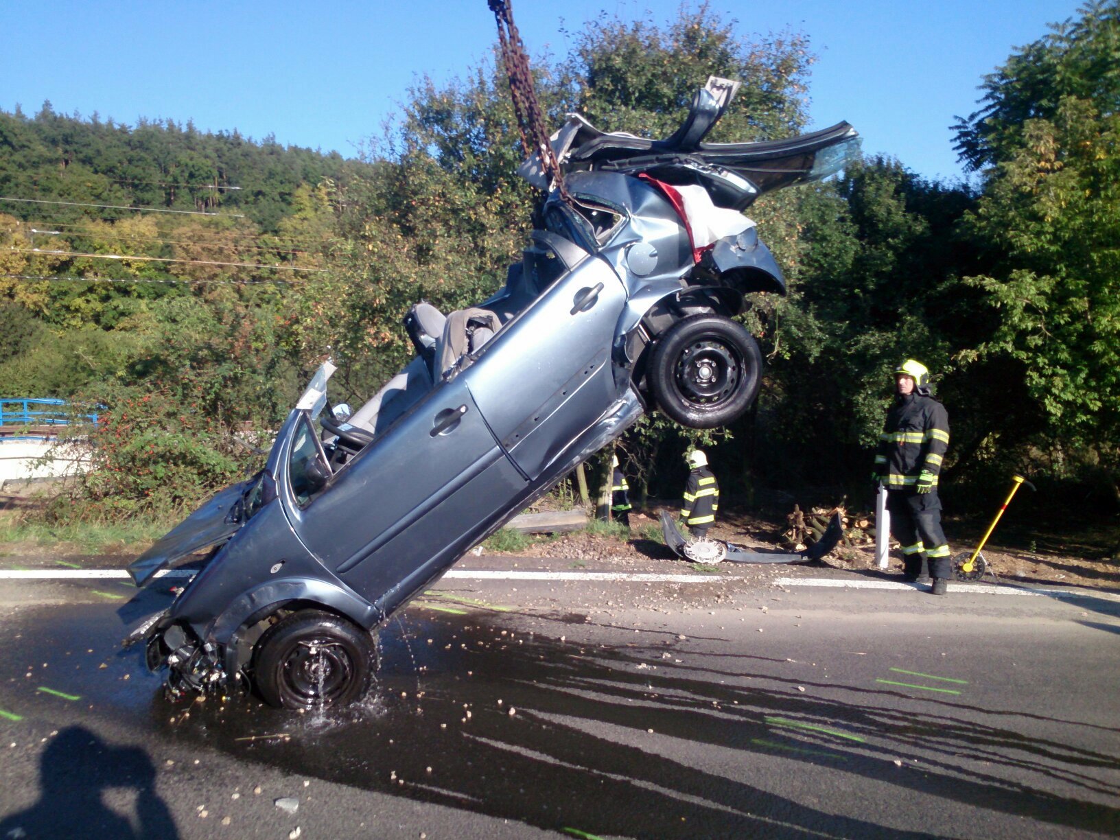 Zraněného muže předali hasiči zdravotnické záchranné službě. Následně vytáhli zdemolovaný vůz na silnici.