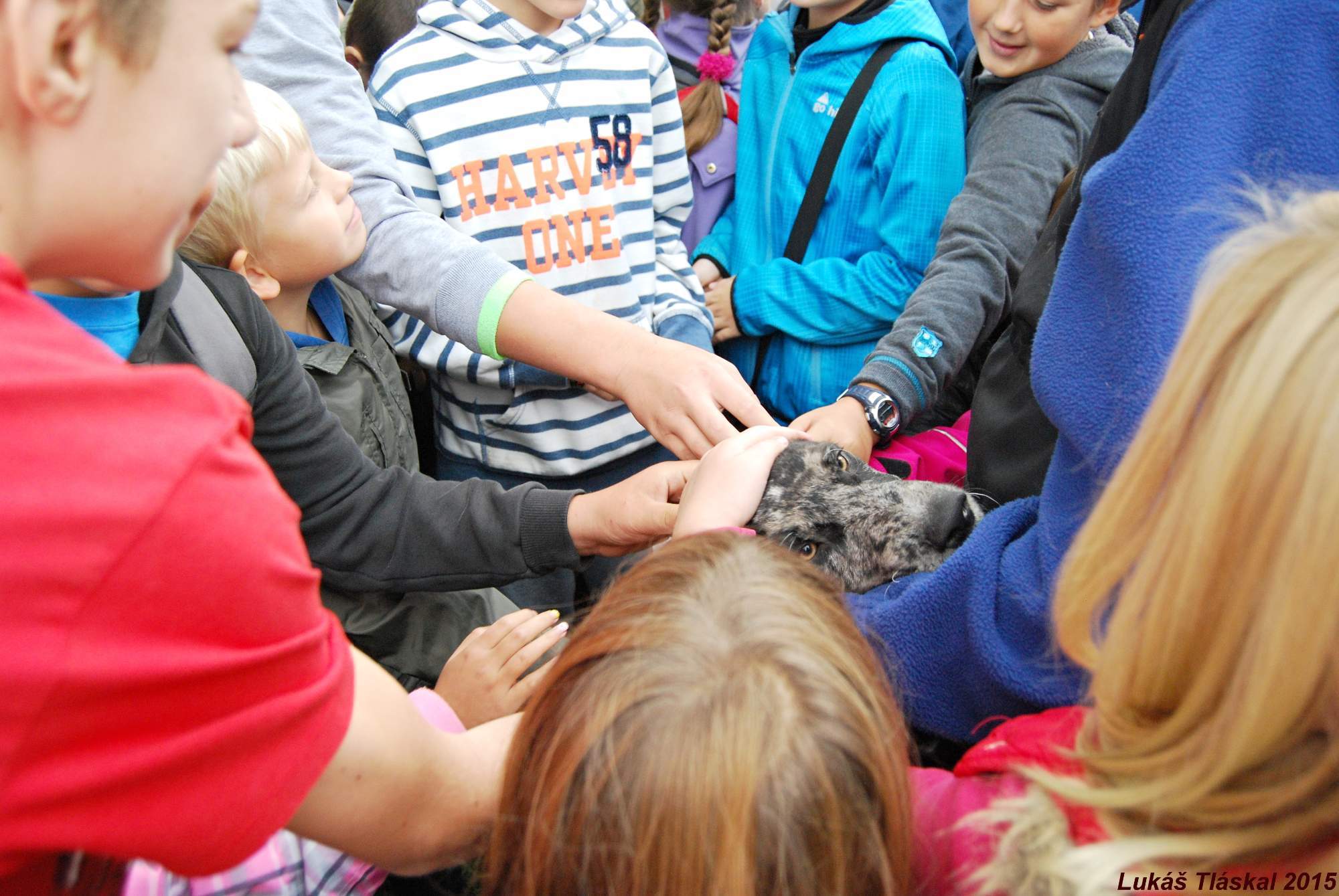 Jako první svojí práci představili Martin Brandner a Zuzka Hrubešová ze SAR-DOG, jejichž čtyřnozí kamarádi se specializují na plošné vyhledávání ztracených osob a pátrání v sutinách. Na ukázku přivezli celkem čtyři pejsky a předvedli pak, jak probíhá výcvik, jak dokážou být poslušní a dokonce jak plný příkazy dávané pohybem rukou. Po bloku otázek a odpovědí dostali děti možnost pejsky pohladit.