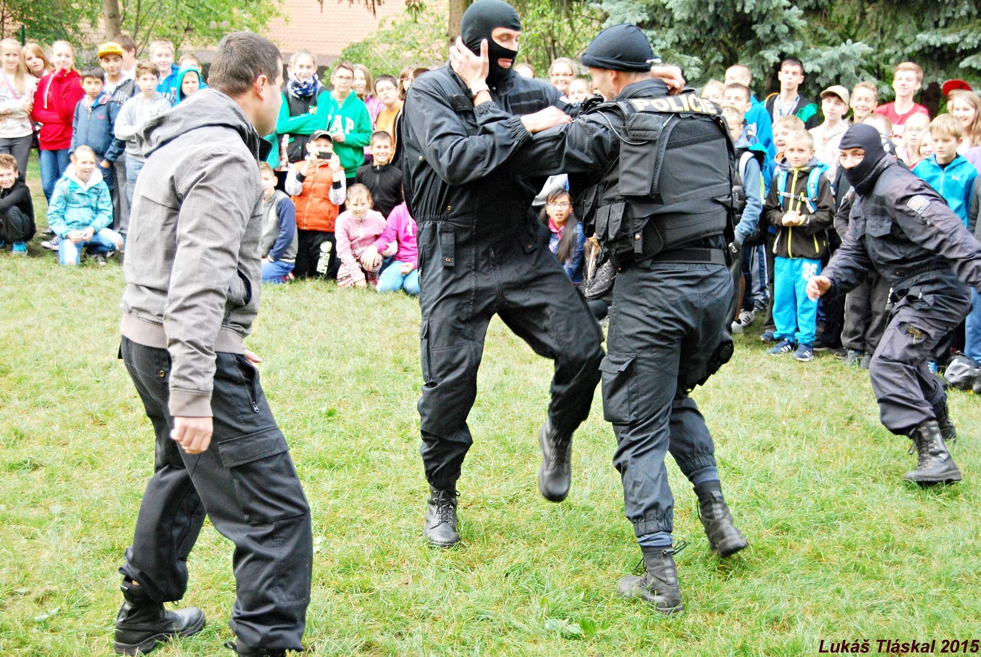 Následný blok čtyř ukázek předvedl práci drsných chlapů od pořádkové jednotky. Zákrok proti demonstrantům, napadení policisty s následným předáním posádce záchranné služby a zásah proti agresorům s použitím služebního psa. Dokonce došlo i na ukázku střelby do davu neletální municí, tedy speciálním projektilem, který musí zastavit, nikoliv zabít agresora. Tento blok ukázek, vzbudil velký zájem převážně u starších ročníků, kteří s respektem sledovali dokonalou sehranost a rychlost zásahů. Některé mladší děti, se pak raději schovávali za své učitele. Tímto blokem ukázek děti provázel velitel jednotky por. Bc. Josef Dobsa.