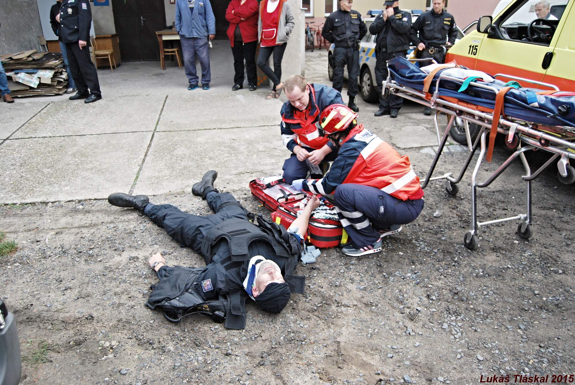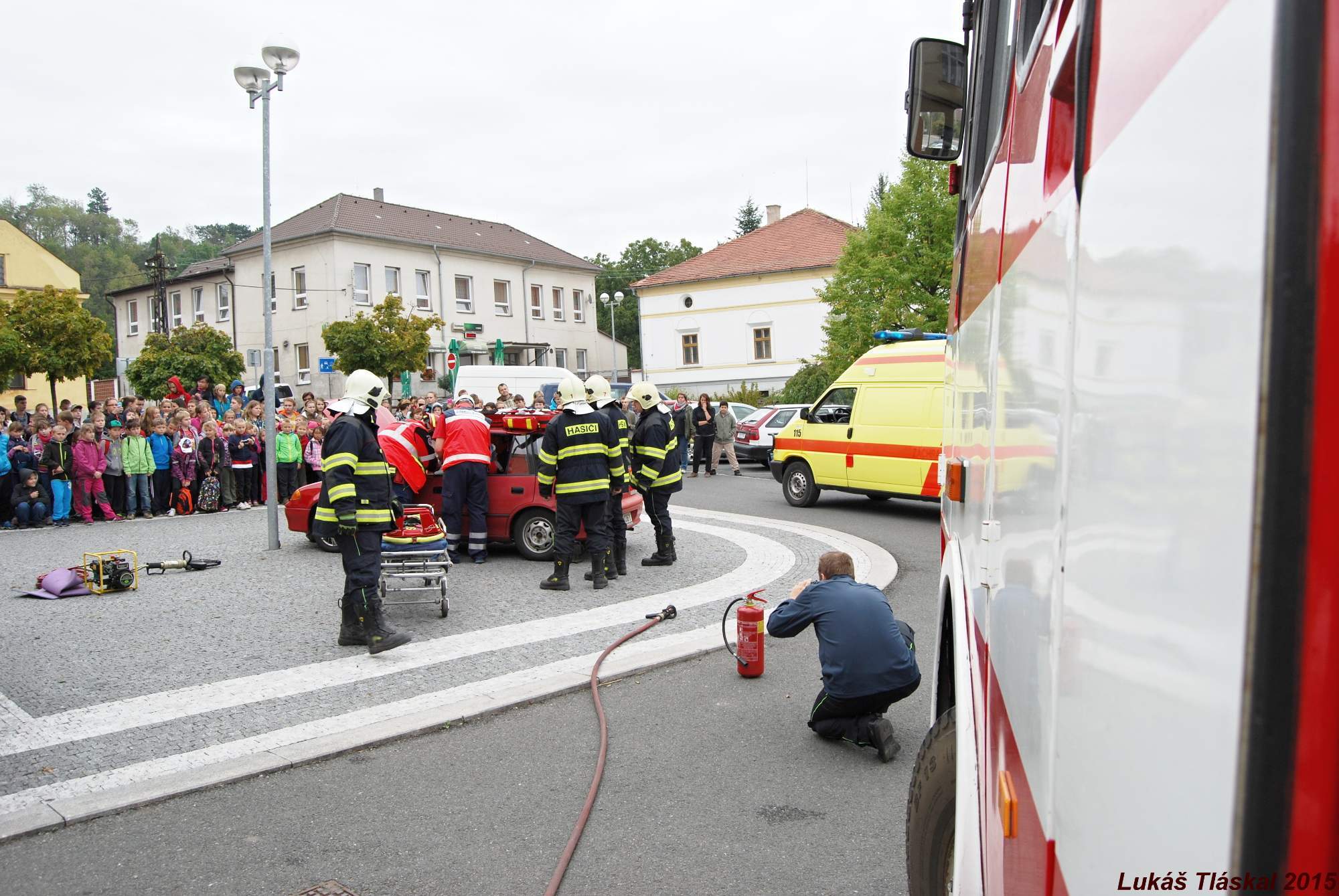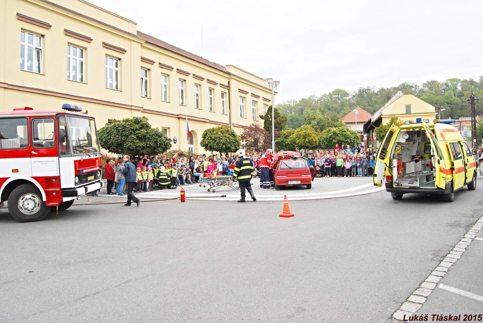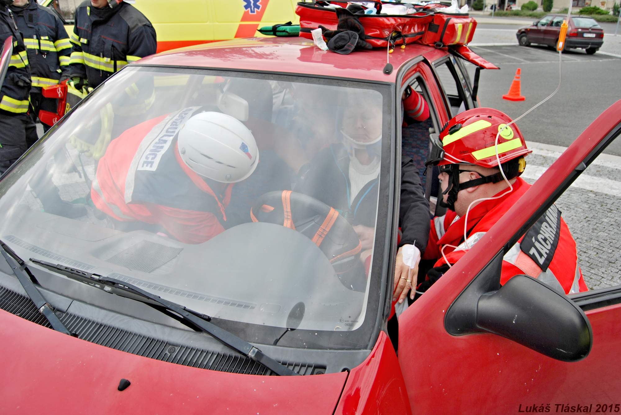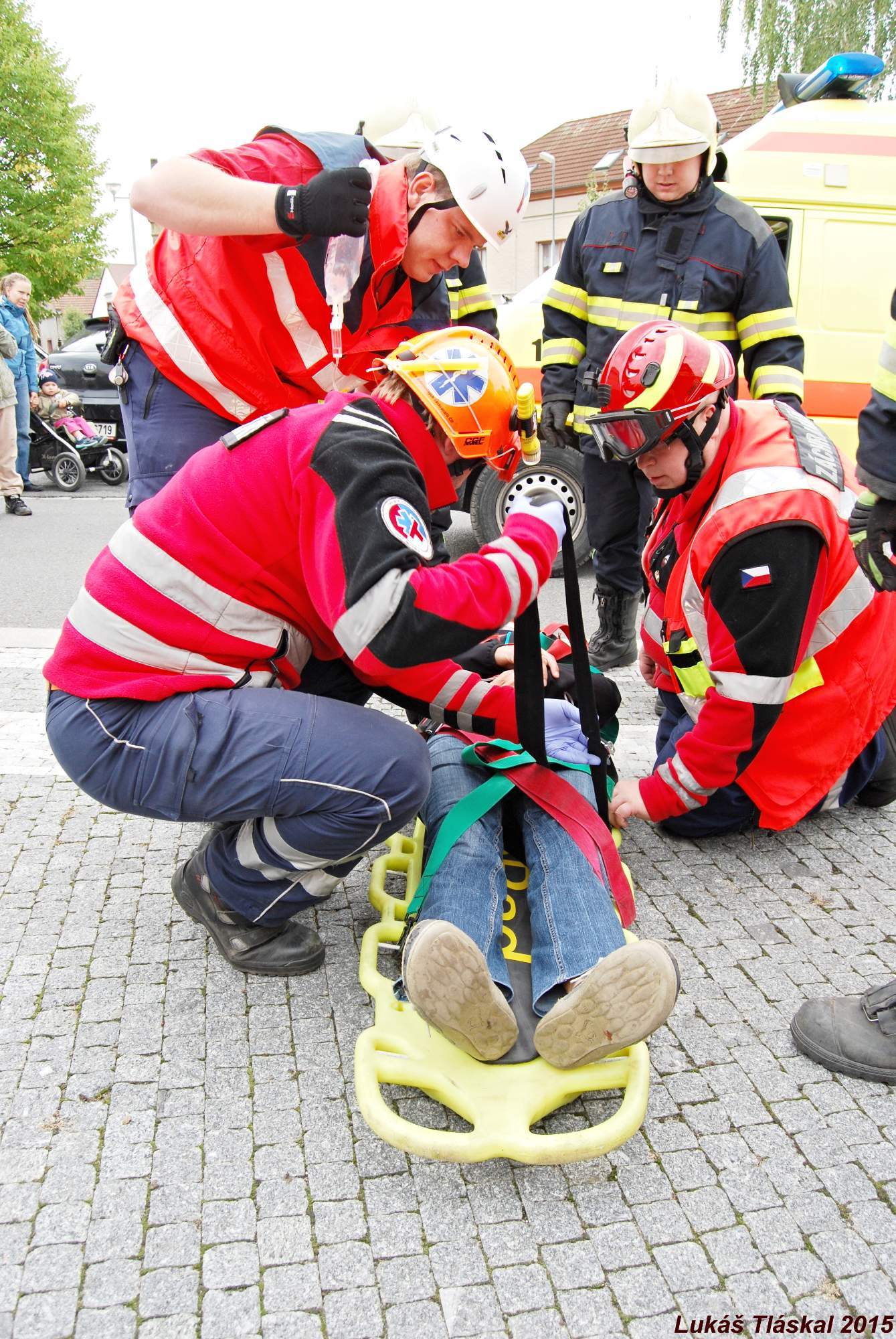 Práci zdravotníků představila v poslední ukázce Asociace dobrovolných záchranářů v součinnosti s Hasiči Všetaty. Tradiční dopravní nehoda, jejímž viníkem byla samotná ředitelka školy, byla demonstrací složité práce a spolupráce záchranných složek. Zajištění místa události, zabezpečení vozidla proti pohybu a proti požáru, celkové vyšetření pacienta a fixace pro podezření na poranění páteře včetně šetrného vyproštění, jsou pak na první pohled rutinními kroky. Na jejich zvládnutí však musí záchranáři dlouho a pečlivě trénovat. Pro nezúčastněného diváka je z toho pak obdivuhodná podívaná. Celou situaci jsme přiblížili komentáři během samotného zásahu.