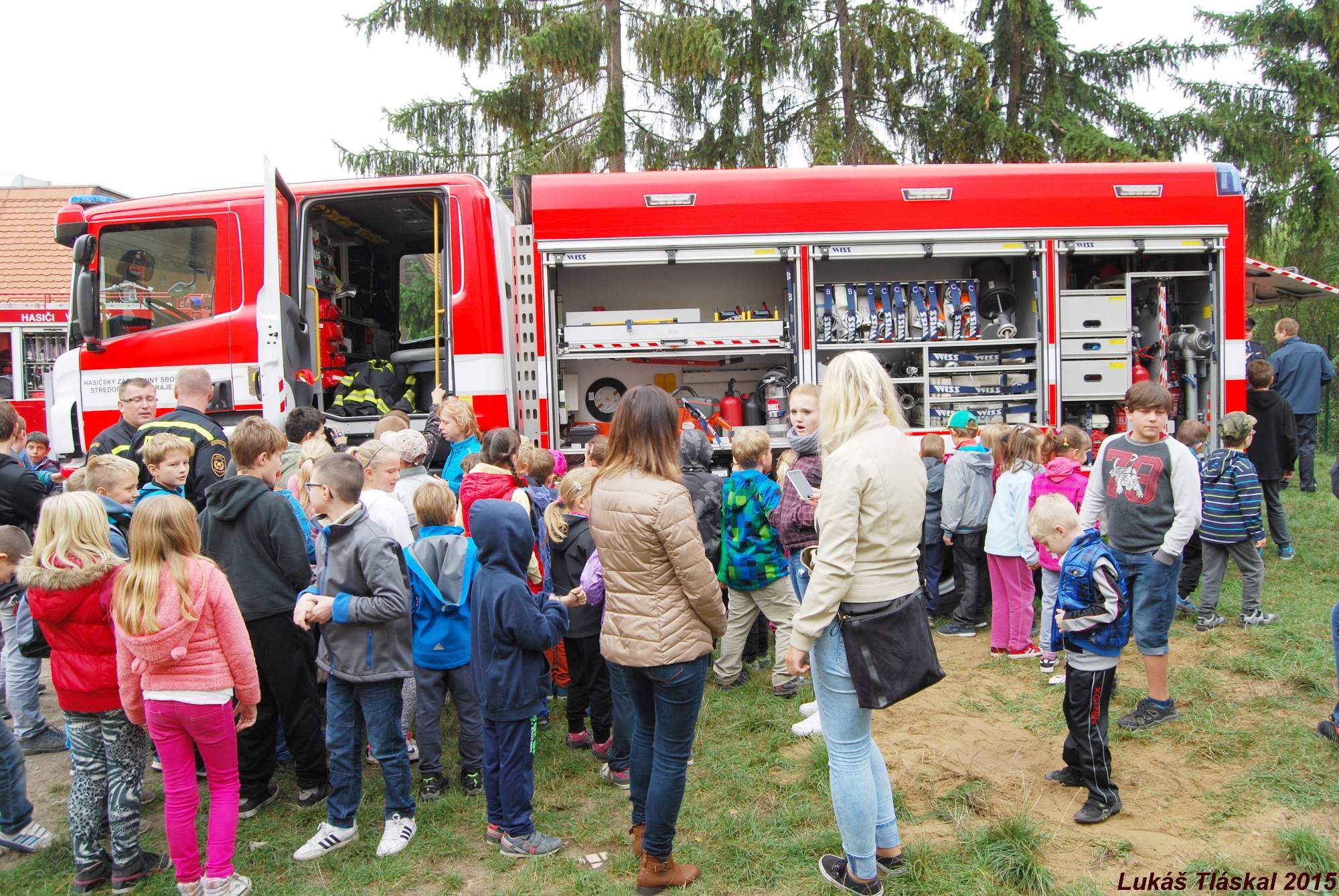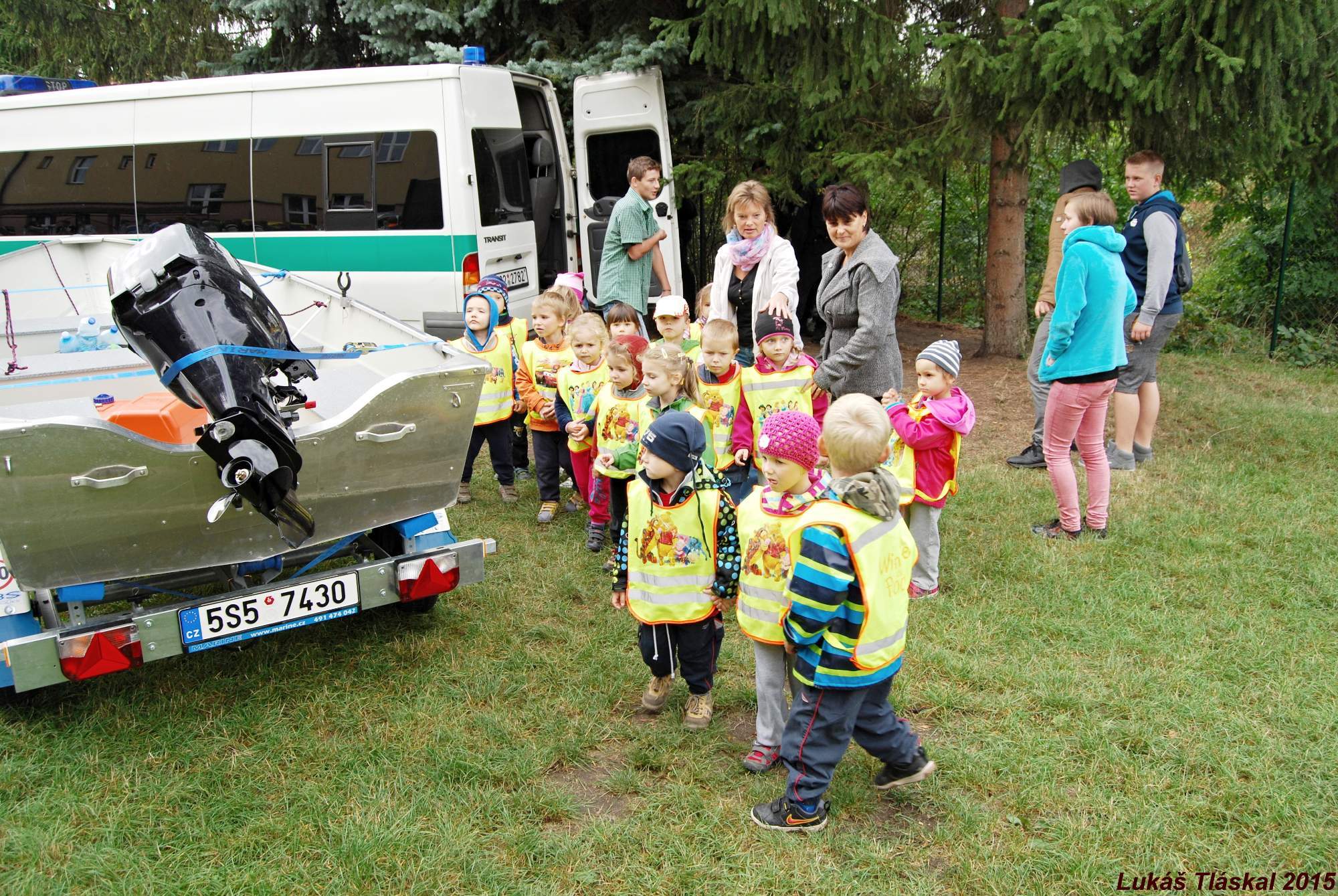 Smršť sedmi dopoledních ukázek práce složek integrovaného systému jsme završili volným pohybem dětí kolem techniky, které bylo opravdu velké množství. Kolegové trpělivě odpovídali na otázky, dokud nebyly děti zahnány na oběd.