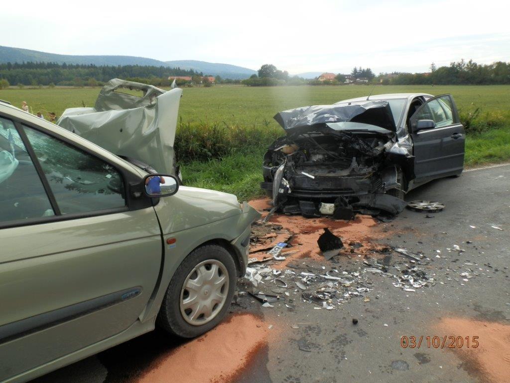 Dopravní nehoda dvou osobních automobilů v obci Vižina si vyžádala tři zraněné osoby