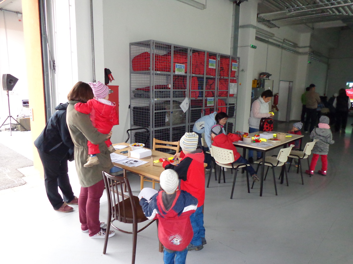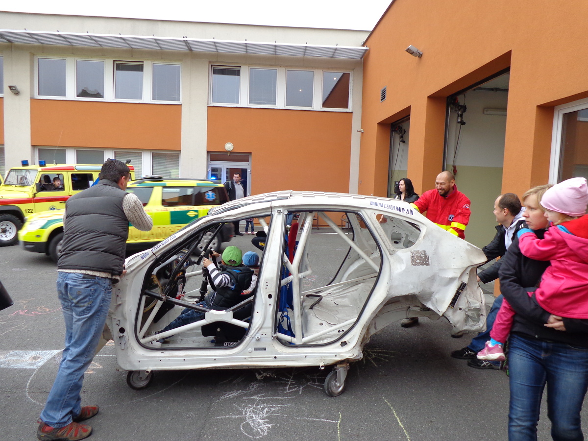 Nezapomněli jsme ani na děti, které si mohly namalovat obrázky sanitek, kreslit křídou na asfaltový povrch nádvoří, vyzkoušet si trenažér závodního vozu k nácviku na vyprošťování a připravena byla i sladká odměna.