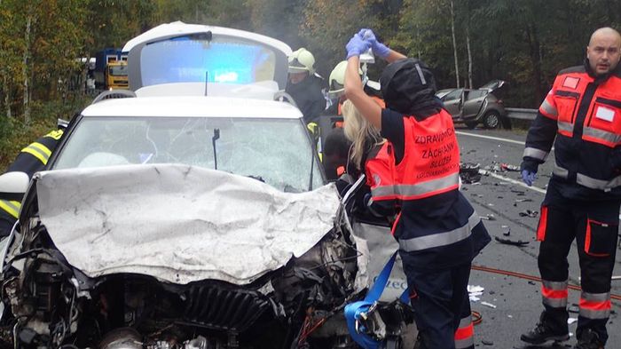 K nehodě došlo krátce před čtvrtou hodinou odpoledne na silnici č. 20 z Karlových Varů směrem na Toužim u obce Vodná. Srazila se zde dvě osobní auta a jedna dodávka. V jednom z osobních aut zůstala zaklíněná spolujezdkyně. Přivolaní hasiči ze stanice Toužim a dobrovolní hasiči z Bečova zraněnou ženu vyprostili a předali záchranné službě. Ta odvezla do nemocnice také řidičku druhého osobního auta.