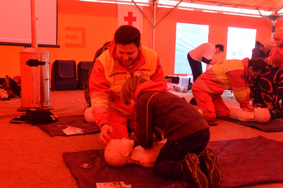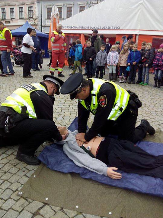 Akce konaná ZZS KV, p.o., oblastním střediskem Třebíč ve spolupráci s oblastním spolkem ČČK, Městskou policií a společností ČEZ je každoročně zaměřená na laickou veřejnost. Návštěvníci si osvojují principy poskytování první pomoci, prakticky si pod vedením záchranářů zkoušeli zprůchodňování uzavřených dýchacích cest, nepřímou srdeční masáž a zástavu krvácení.