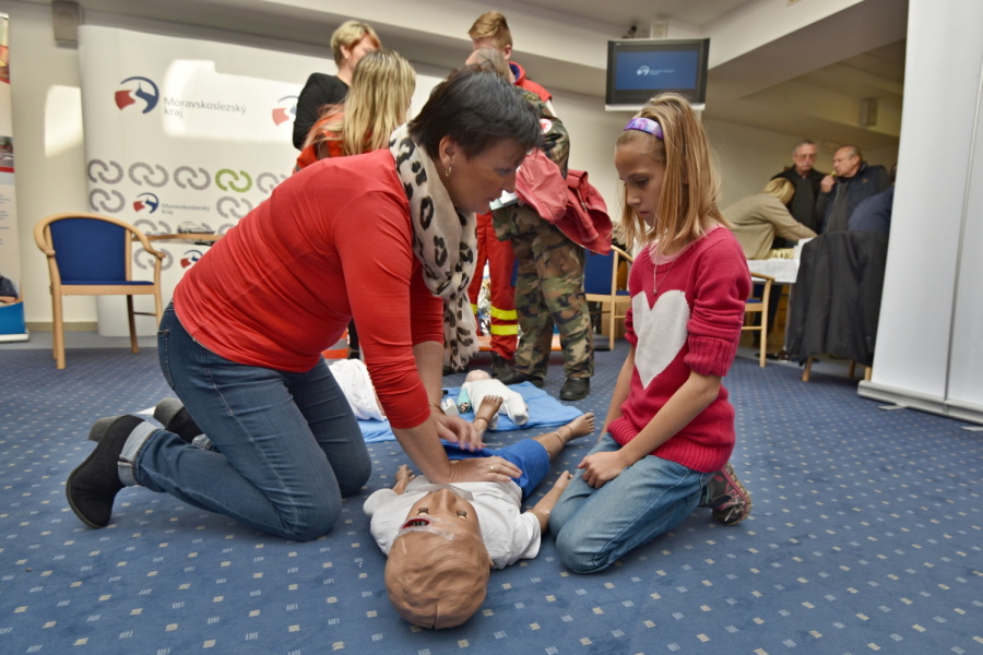 Pod vedením záchranářů si početní návštěvníci, včetně dětí, mohli sami vyzkoušet, jak poskytnout základní první pomoc do příjezdu posádky ZZS. Veřejnost si rovněž mohla zblízka prohlédnout a vidět v činnosti některé z moderních přístrojů, které posádky ZZS používají při záchraně lidských životů. Záchranáři během celého dopoledne odpovídali také na množství zvídavých otázek nejen k problematice první pomoci, ale i k práci záchranné služby.