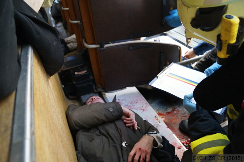 „Všichni, kdo můžete chodit, přijďte prosím za mnou.“ Touto větou začíná dne 12. 11. 2015 zasahovat hasič zdravotník a na pokyn svého velitele se snaží začít rozplétat velice náročný zásah. Velitel komunikuje s operačním střediskem a předává nezbytné informace: