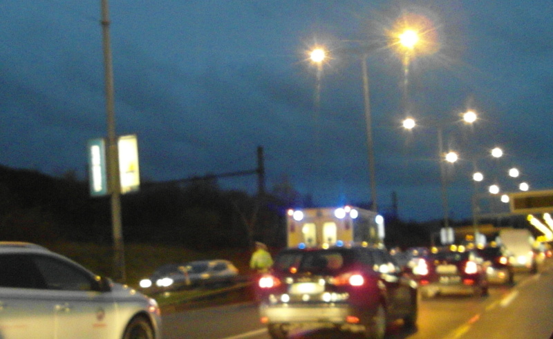 Důležitou dopravní tepnu hlavního města blokovala dnes, 20. 11. 2015 v ranních hodinách ve směru z centra hromadná dopravní nehoda osobních automobilů.
