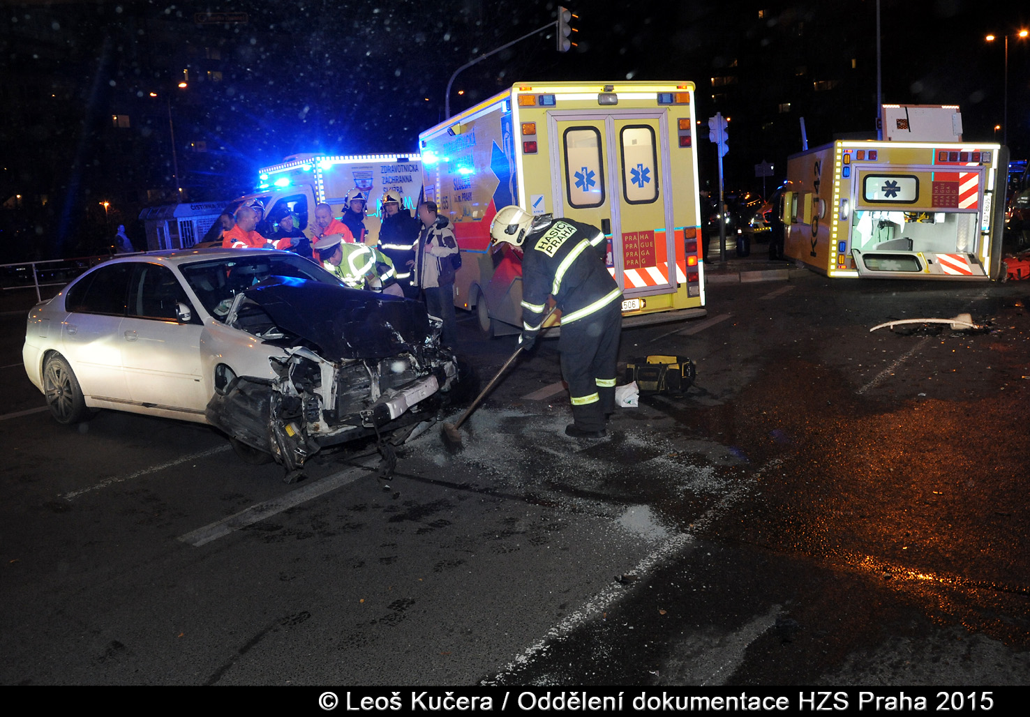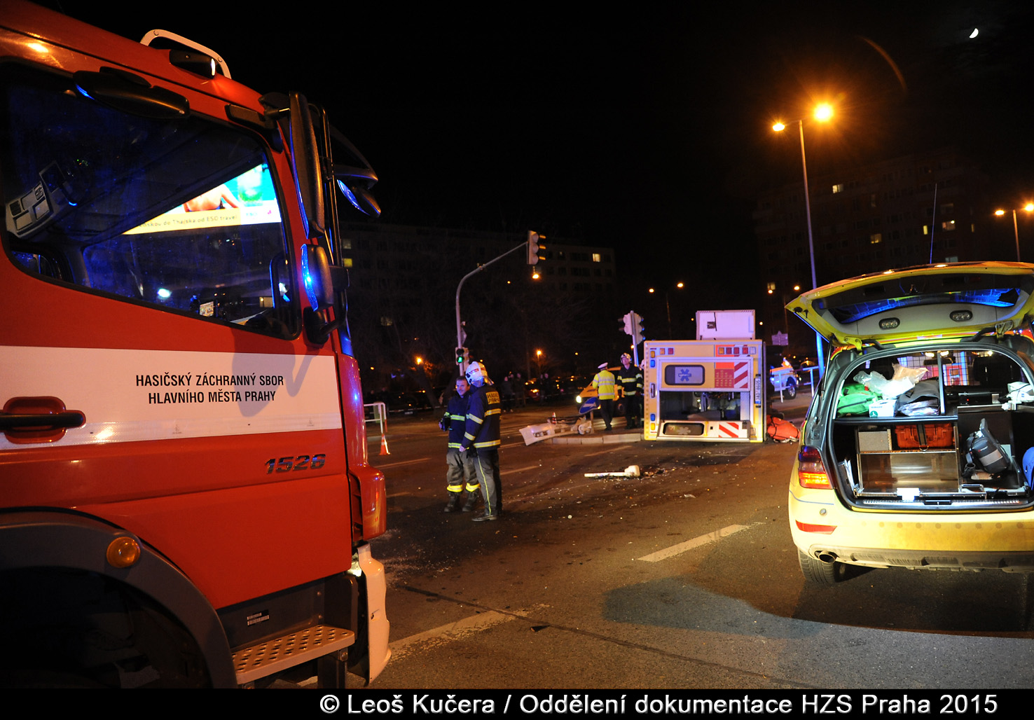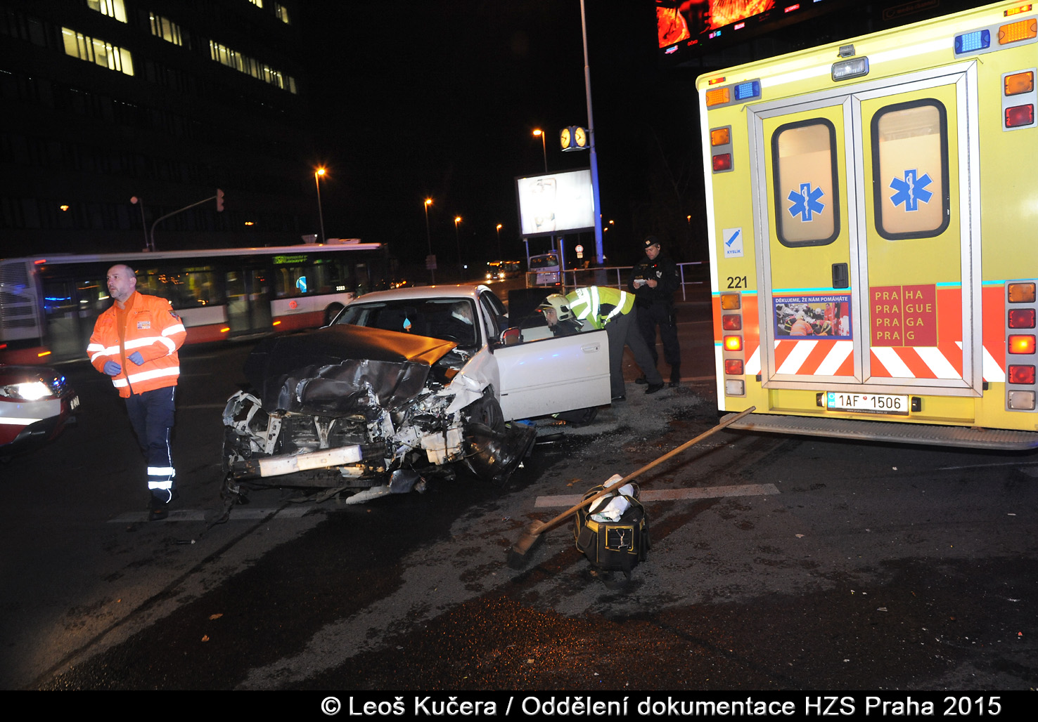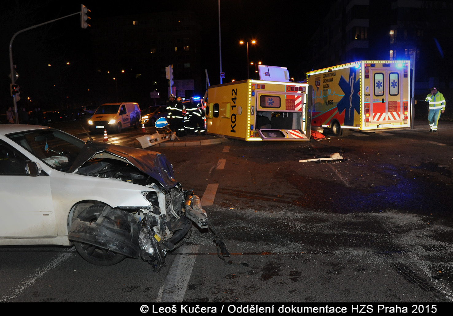 Hrozivě vypadající nehoda sanitky pražské záchranky a osobáku se naštěstí obešla bez vážných zranění