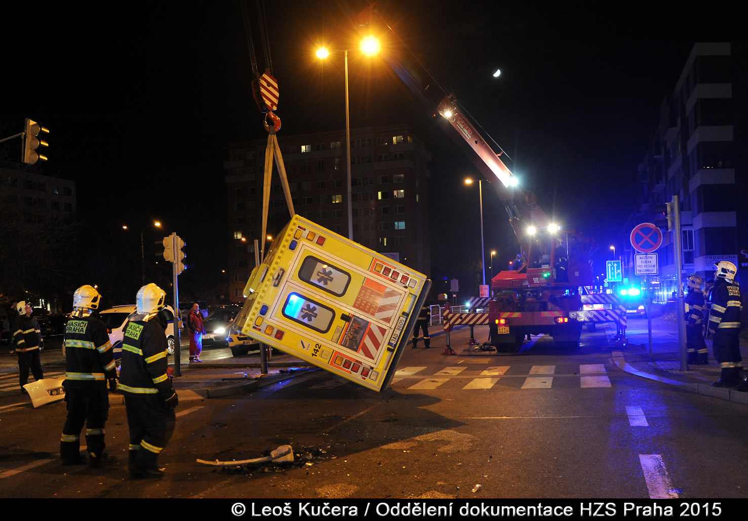 Jak to na místě vypadalo, se můžete podívat na snímcích dokumentaristy HZS hl. m. Prahy. Po ukončení šetření havarovanou sanitku postavil zpět na kola hasičský jeřáb a odtahový vůz 126 jí následně transportoval k uložení a prohlídce/zjištění škod. Odtažen byl i havarovaný osobní vůz.