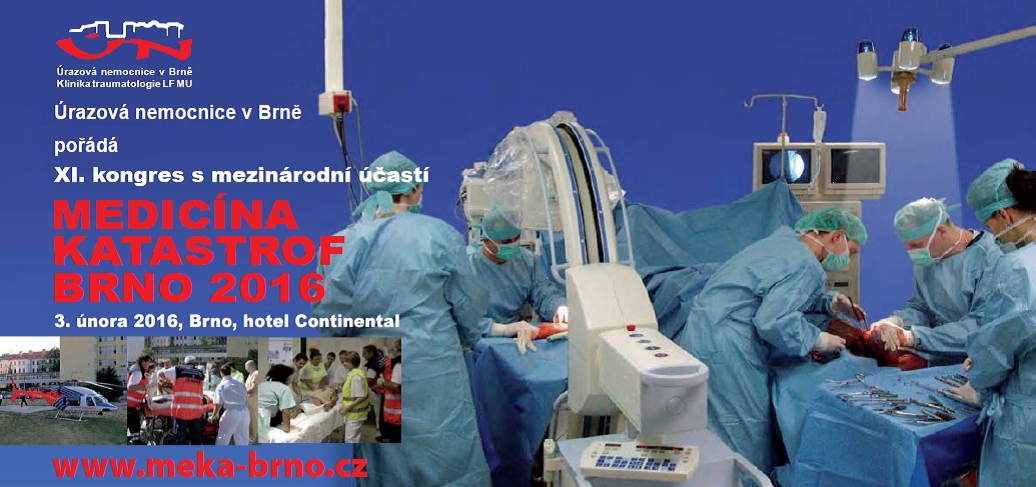 Vážené dámy a pánové, dovolujeme si Vás pozvat k účasti na již XI. kongres s mezinárodní účastí „Medicína katastrof Brno 2016“, který se koná dne 3. února 2016 v kongresových prostorách hotelu Continental v Brně.