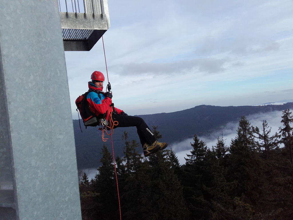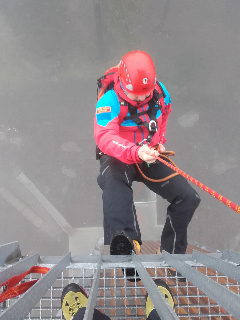 Druhý den byl výcvik dobrovolných členů zaměřen na pravidelné a povinné školení pro práci ve výškách a nad volnou hloubkou, zásadami bezpečnosti práce při manipulaci s tlakovými lahvemi a zásadami vedení radioprovozu při organizaci záchranných prací.