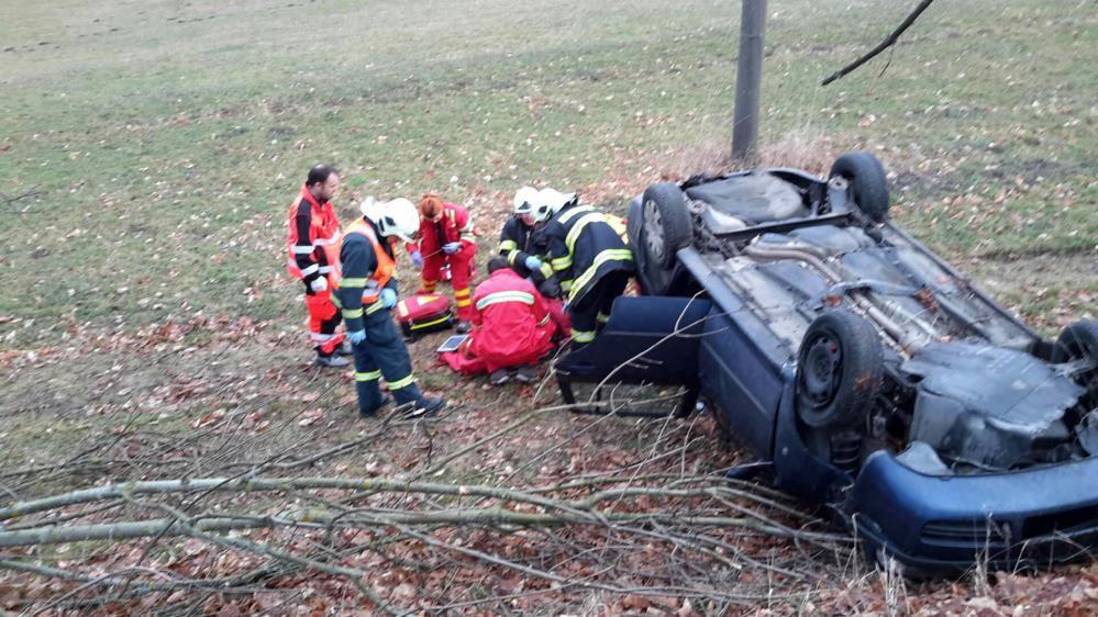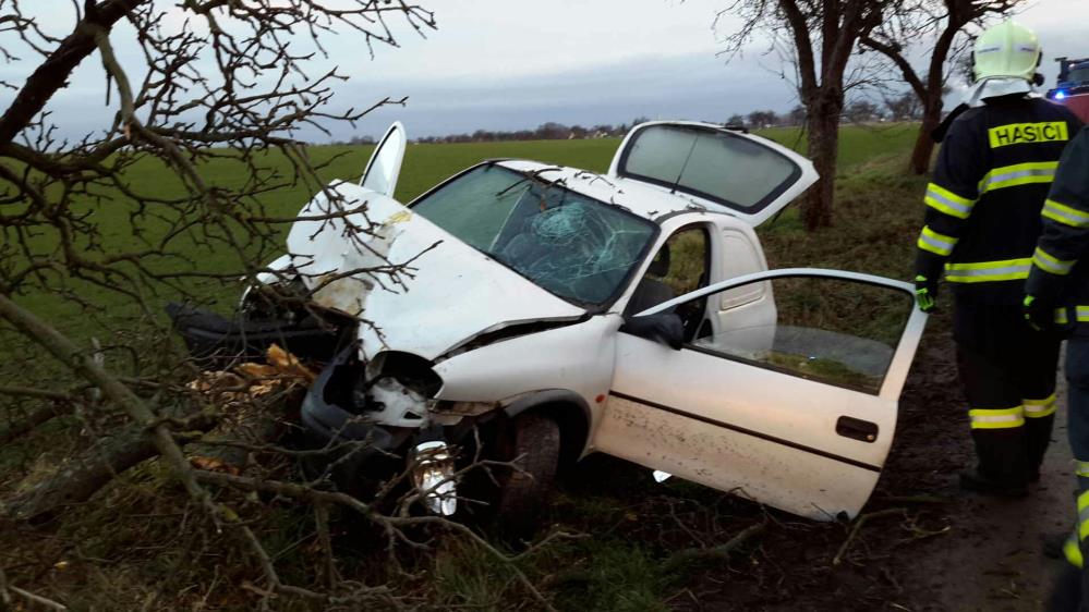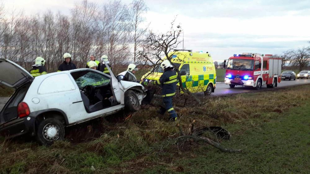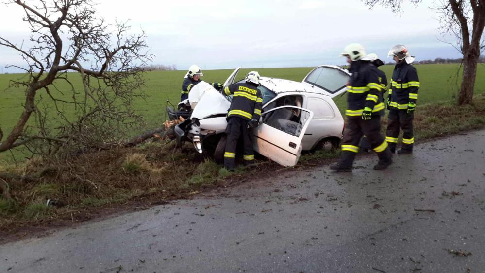 K nehodě osobního vozu do Dolan vyjížděli ve středu 13. ledna v 7.41 hodin profesionální hasiči z Pardubic. Jednalo se o náraz automobilu do stromu.