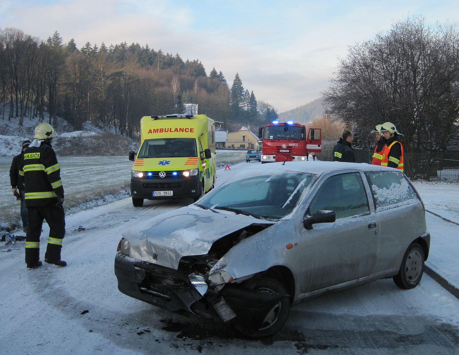 Před půl desátou dopolední dne 14. 1. 2016 došlo v obci Bystřička k dopravní nehodě osobních vozidel zn. Škoda Fabia a Fiat Punto. Podle oznamovatele zůstal řidič škodovky, která zůstala po nehodě nakloněna v příkopu, ve vozidle zaklíněn.