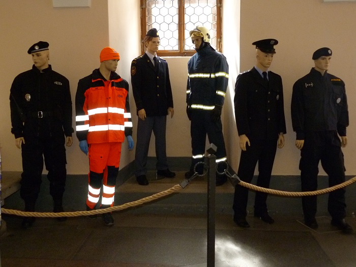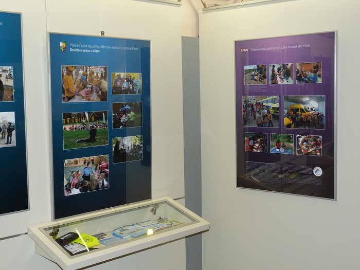 Vitríny s fotografiemi a propagačními předměty Městské policie Plzeň, Policie České republiky, Zdravotnické záchranné služby Plzeňského kraje, Hasičského záchranného sboru a Sborů dobrovolných hasičů zabírají celý prostor vestibulu radnice. K vidění jsou ovšem také například uniformy všech složek IZS. ZZS Pk vystavuje dva panely fotografií z nejrůznějších edukačních a předváděcích akcí. Propagačním předmětům zdravotnických záchranářů pak vévodí fešák Kryštůfek.