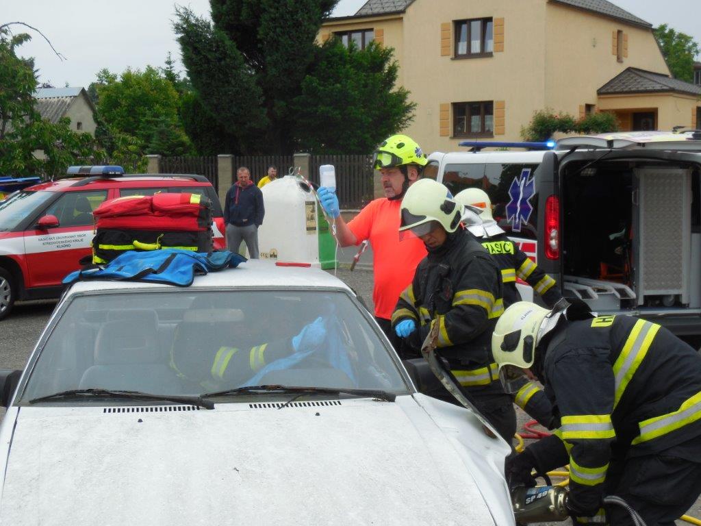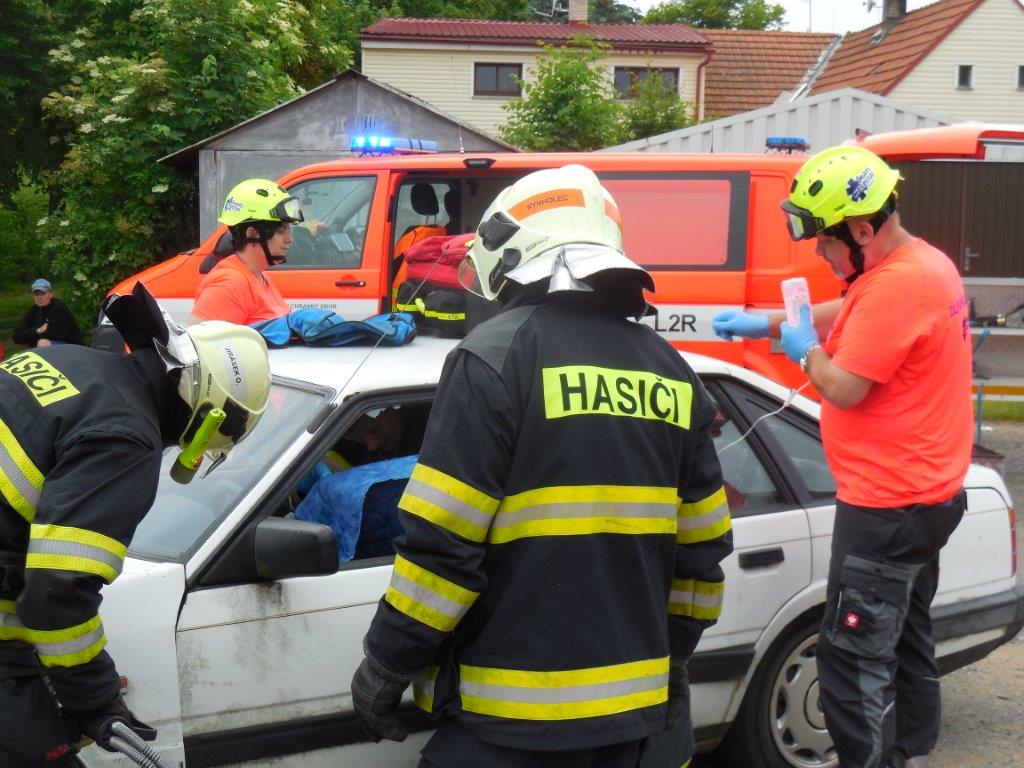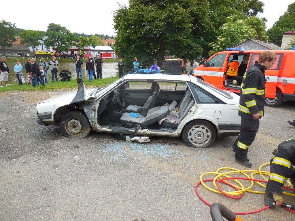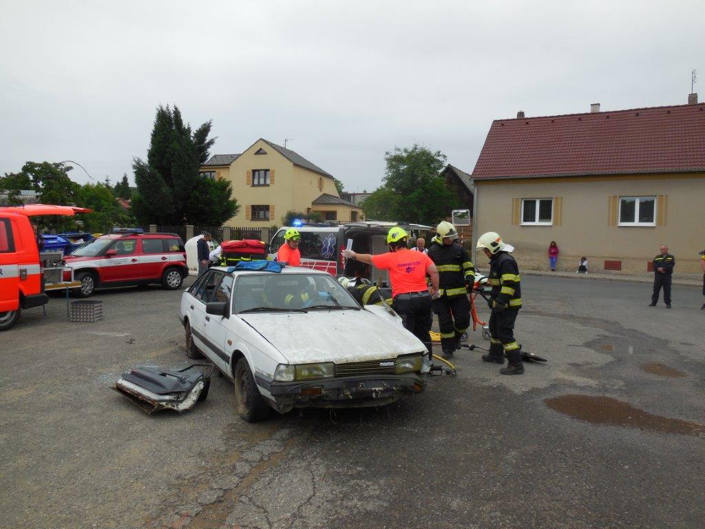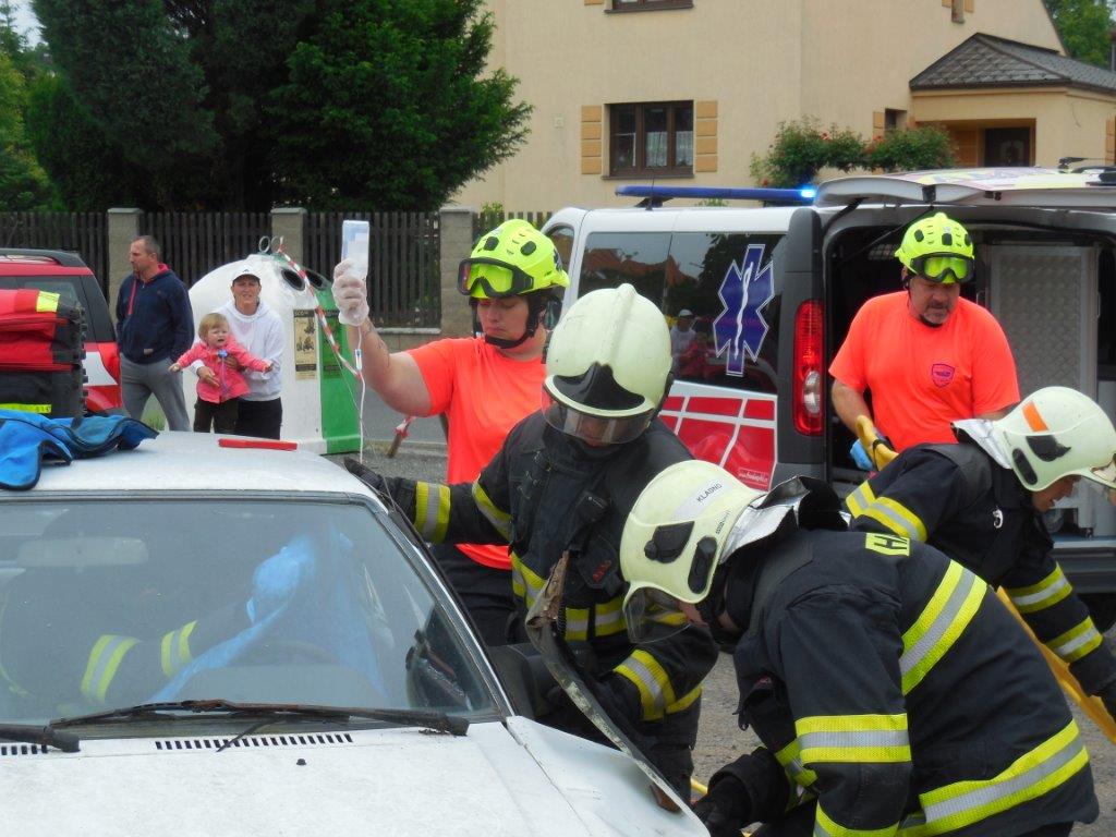 Spolu s profesionálními hasiči předvedli ukázku vyproštění a záchrany osoby při dopravní nehodě.