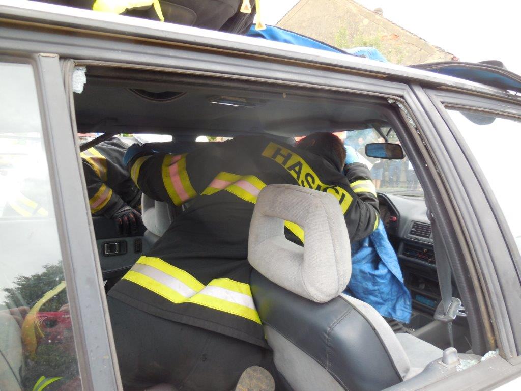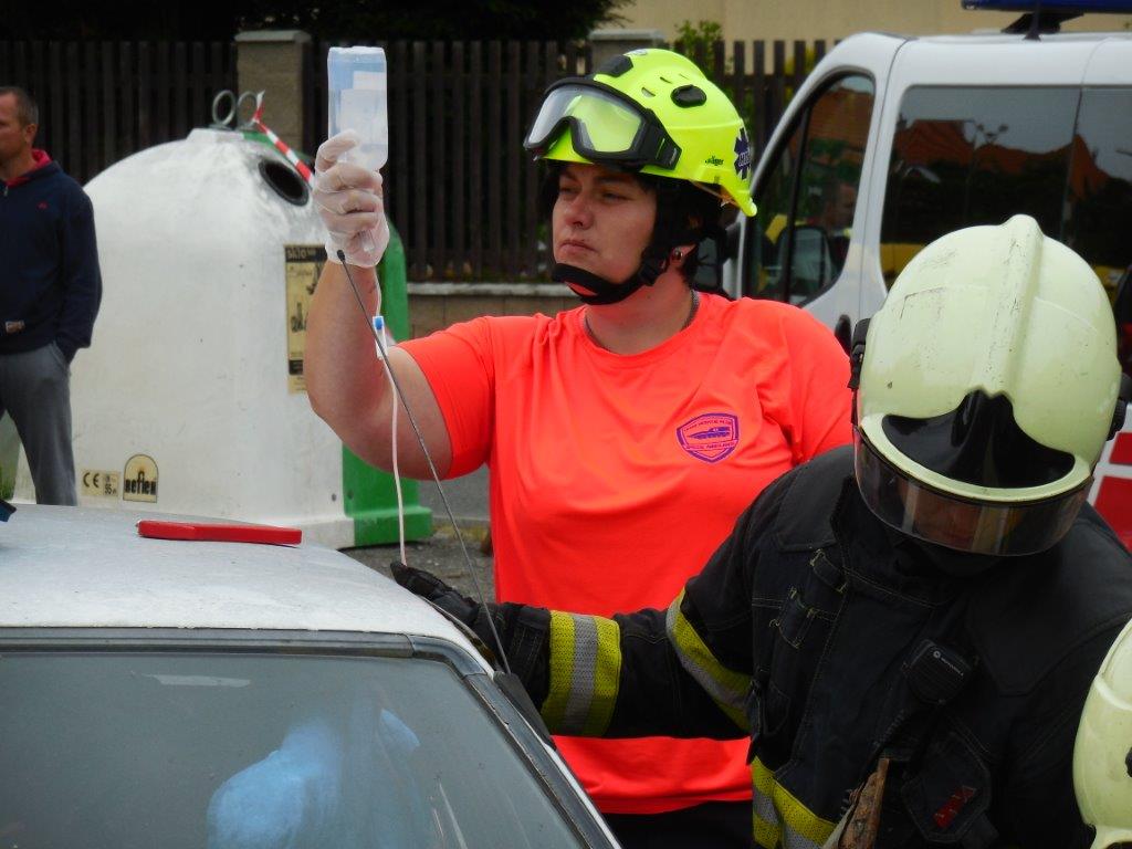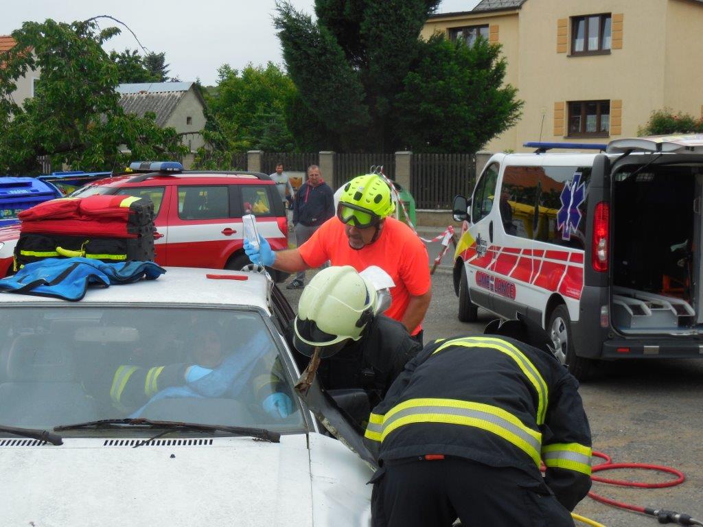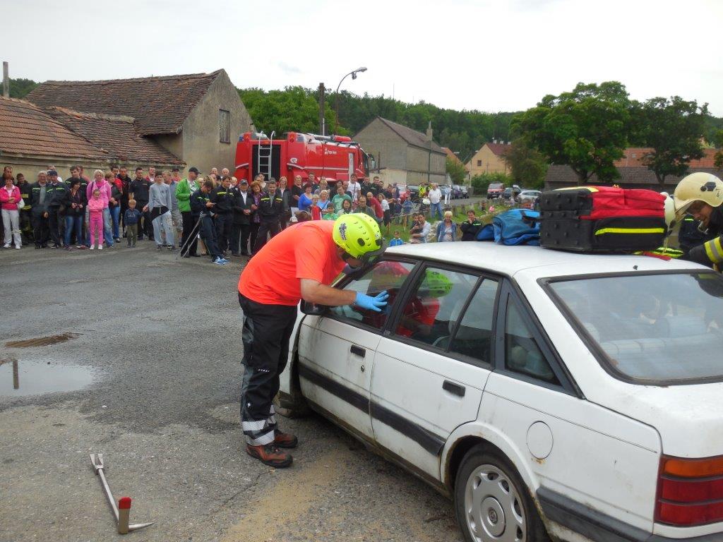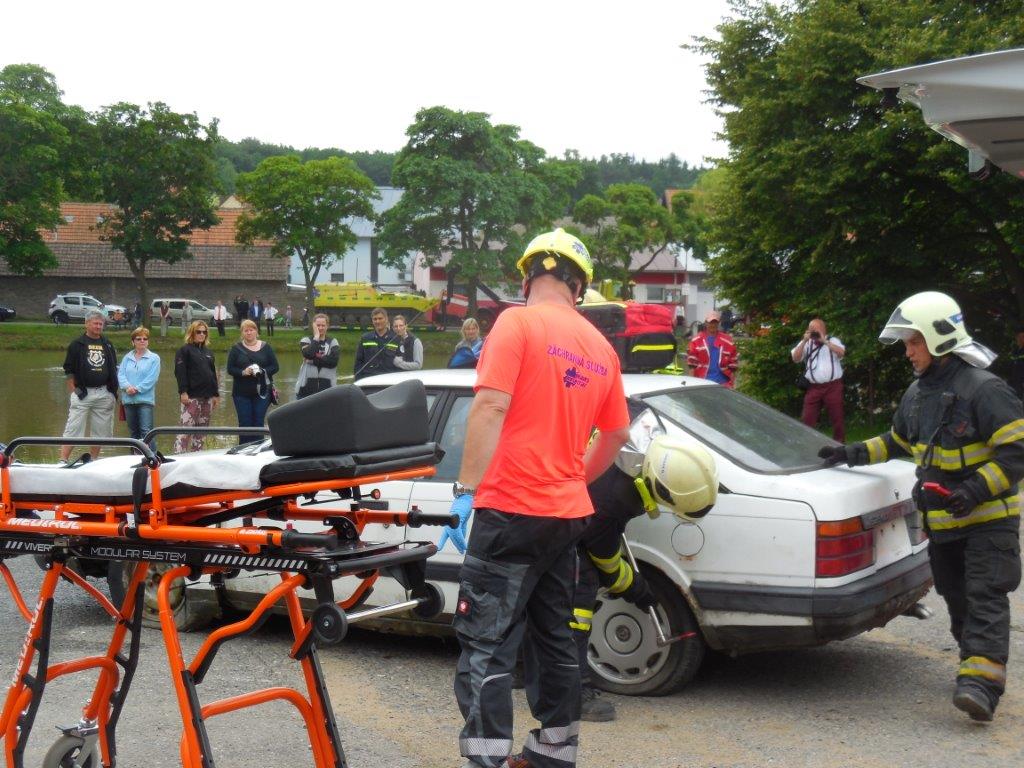 Spolu s profesionálními hasiči předvedli ukázku vyproštění a záchrany osoby při dopravní nehodě.