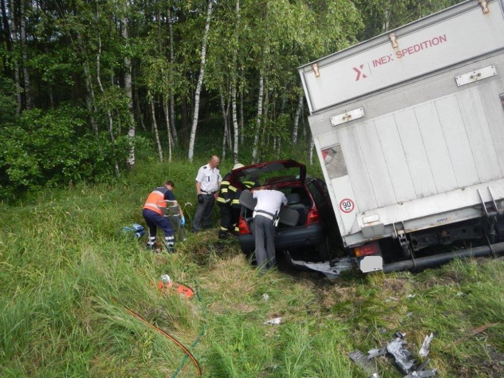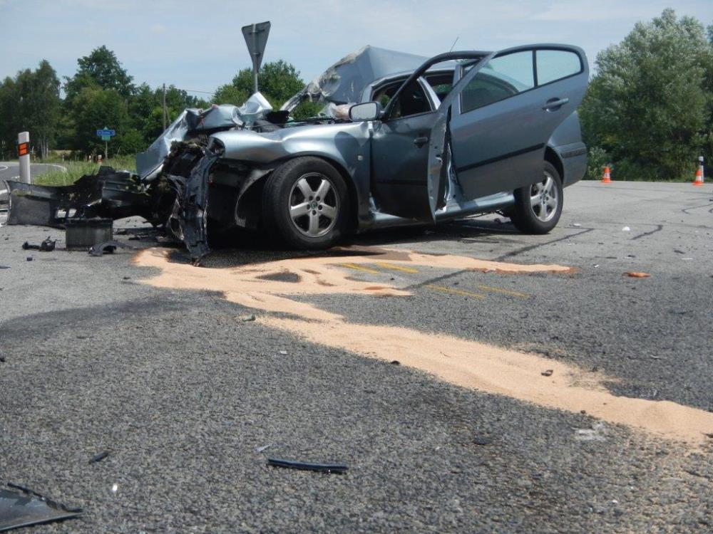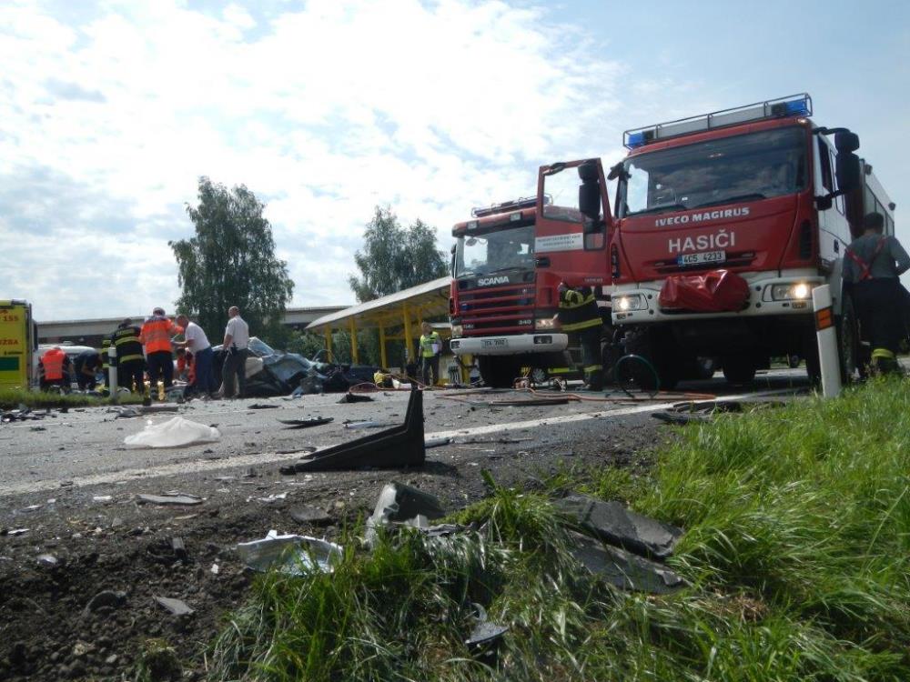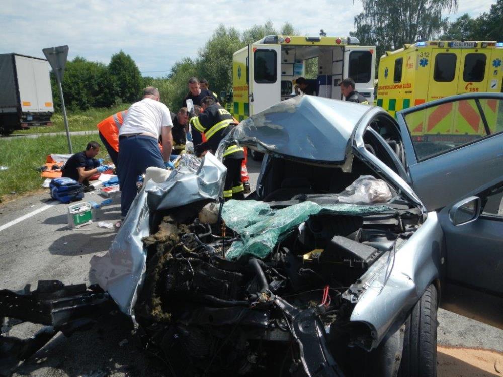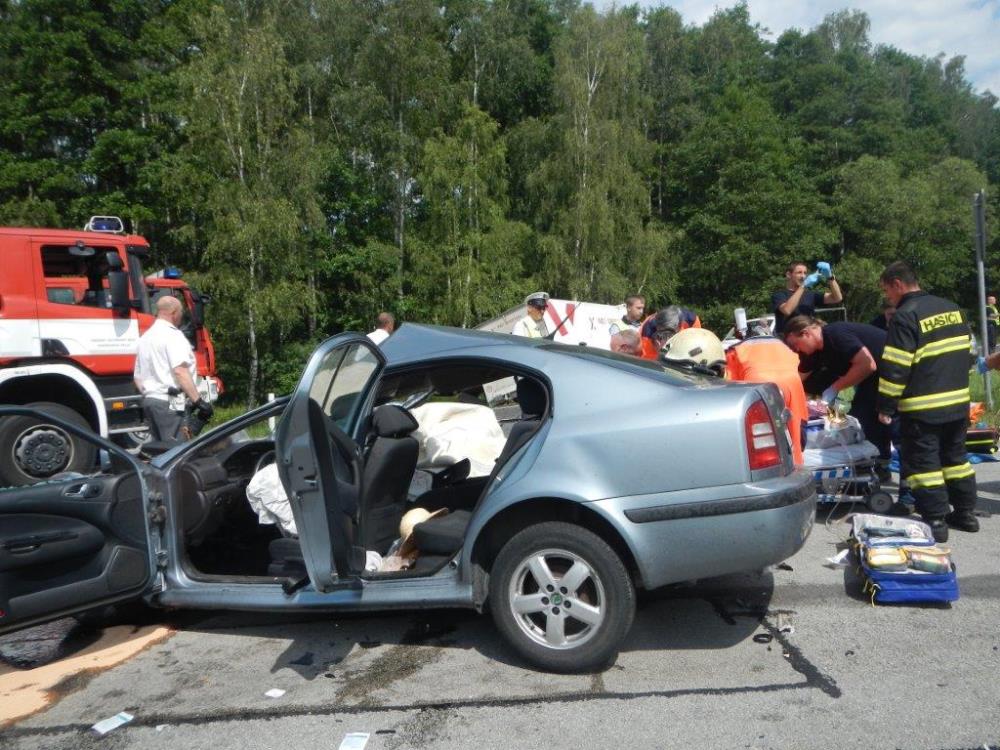 Průzkum na místě ukázal, že došlo ke střetu nákladního automobilu značky Iveco a dvou osobních aut továrních značek Škoda Octavia a Renault Twingo. Ve každém z osobních vozů zůstala zaklíněná jedna osoba. Hasiči okamžitě začali vyprošťovat pomocí hydraulického vyprošťovacího zařízení. Náročné bylo především vyproštění spolujezdce ze zcela zničené Škody. Skvělým zásahem během několika minut hasiči oba zraněné předávali zdravotníkům ZZS. Kromě těchto dvou osob utrpěly zranění další tři osoby. Všech pět si převzala ZZS Jihočeského kraje. U nehody přistál vrtulník LZS.
