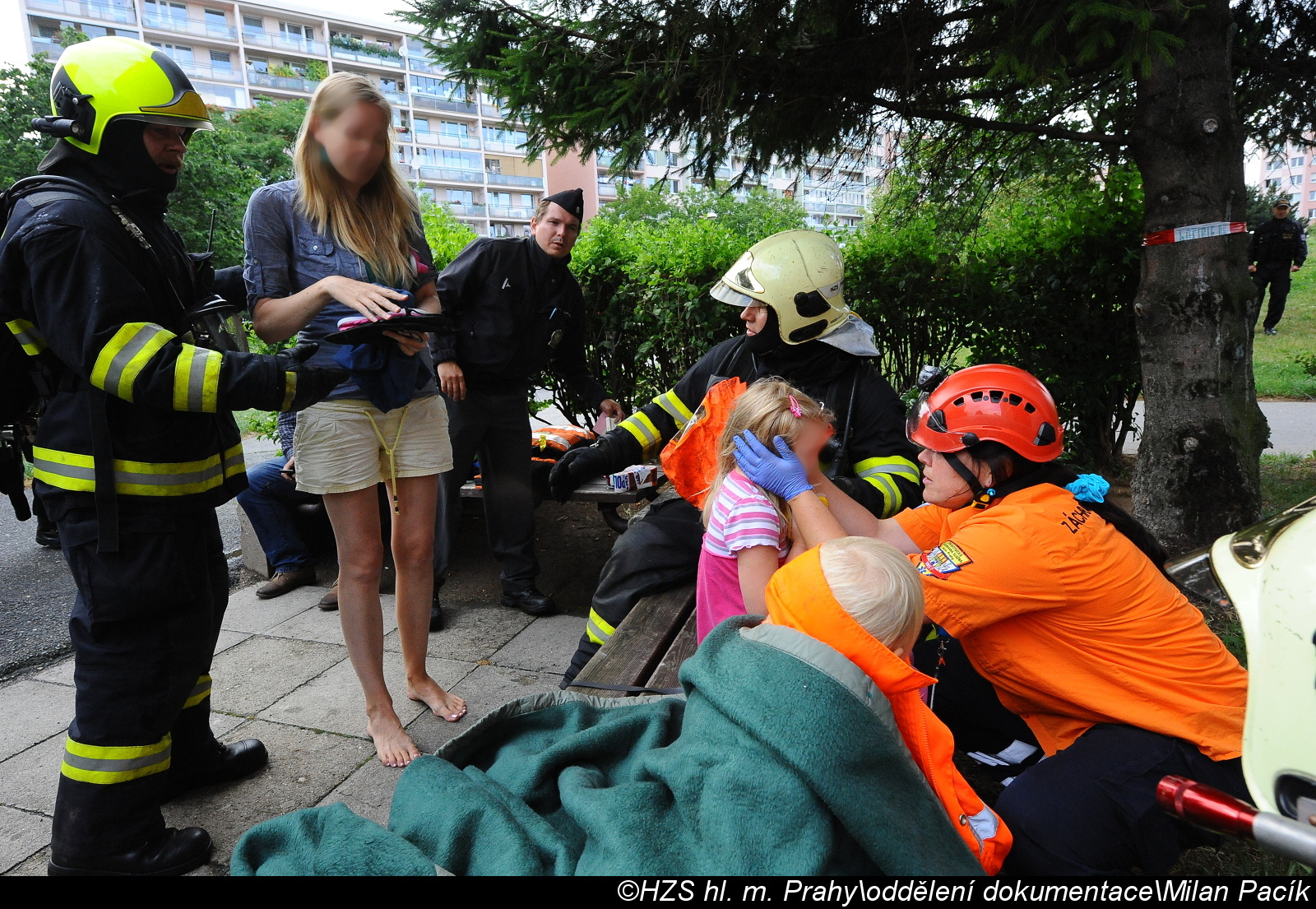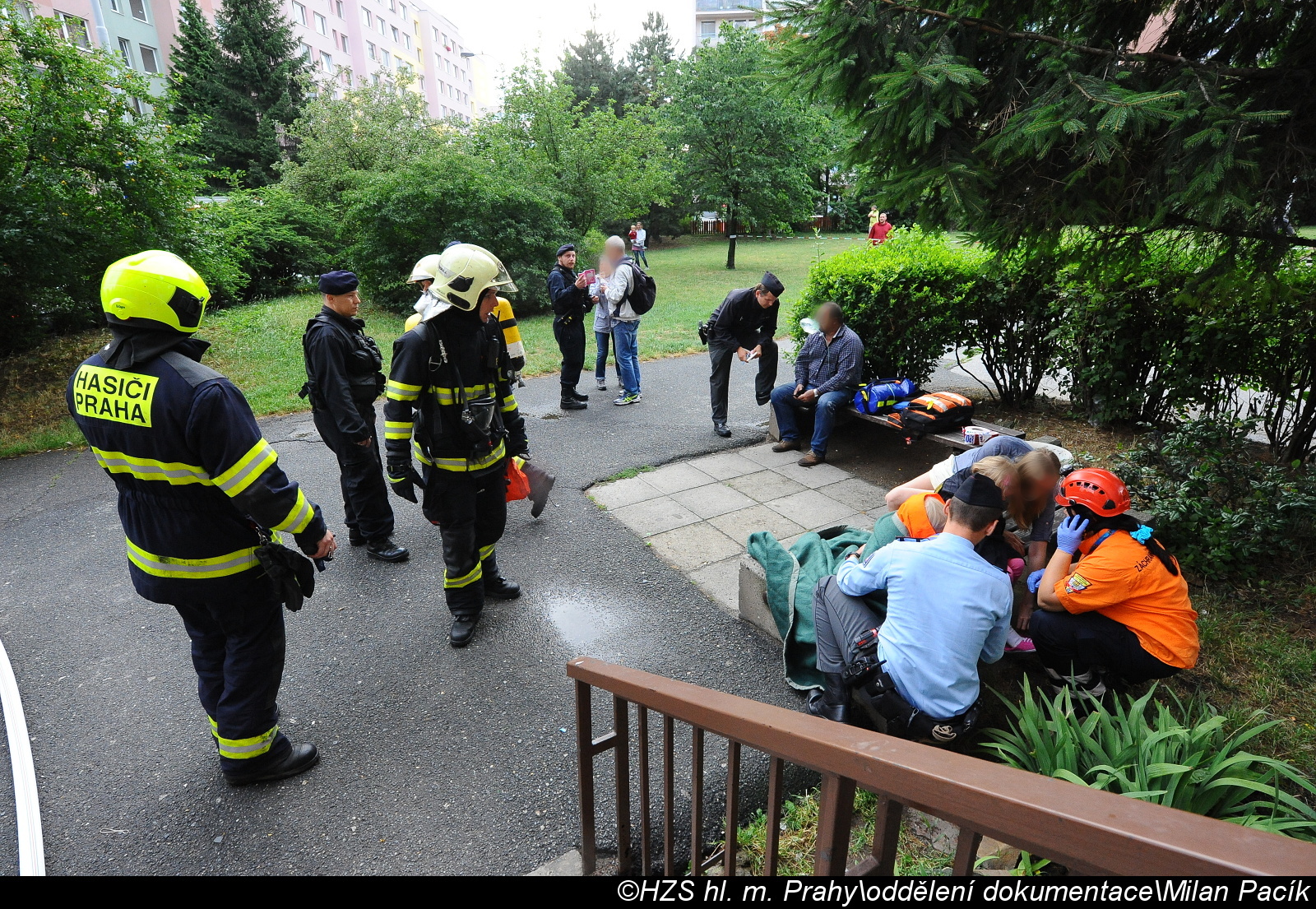 Na místě jsme ošetřili poté, co se je hasičům podařilo pomocí evakuačních masek vyvést z domu, celkem 7 osob, z toho dvě děti. Jeden muž musel být s intoxikací zplodinami hoření převezen do Thomayerovy nemocnice. Jednalo se o uživatele bytu, který se snažil počínající požár hasit.