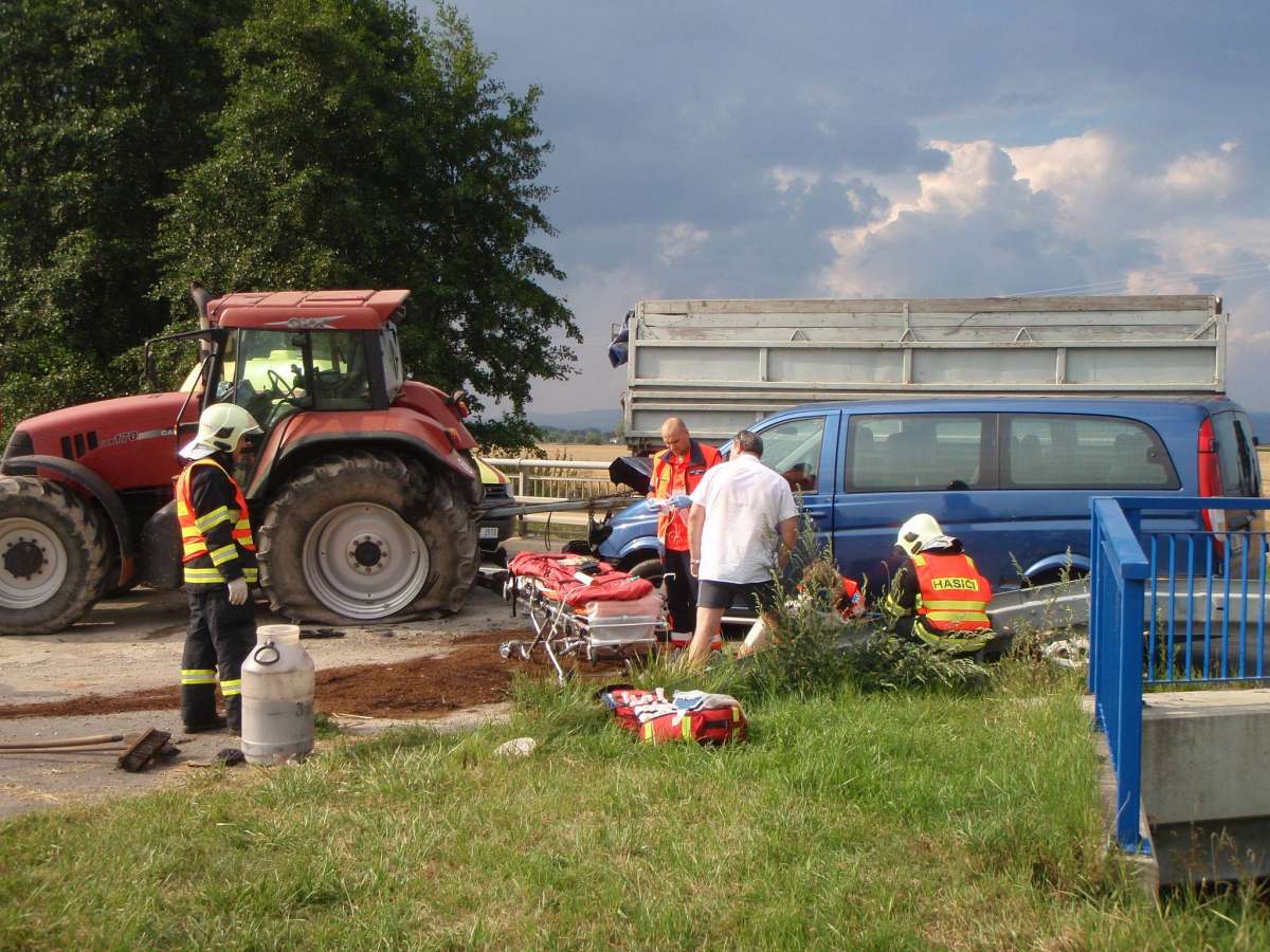 Zdravotnické operační středisko převzalo v úterý krátce po sedmnácté hodině tísňovou výzvu s dopravní nehodou traktoru a osobního vozidla mezi Uničovem a Želechovicemi.