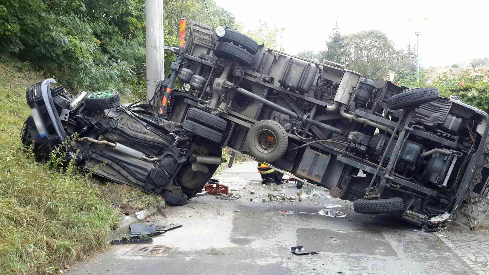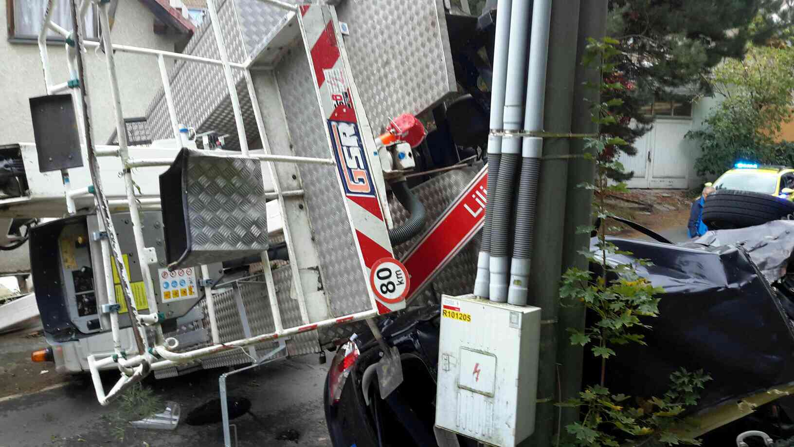 V Brně se převrátila vysokozdvižná plošina, její obsluha byla vážně zraněna