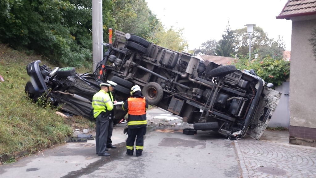 Hasiči asistovali záchranné službě při ošetřování pacienta, zajistili místo proti vzniku požáru a řešili únik hydraulického oleje. Po vyšetření nehody Policií ČR vyprostili hasiči osobní vozidlo a otočili plošinu zpět na kola, uvedl Jaroslav Mikoška z HZS JMK.