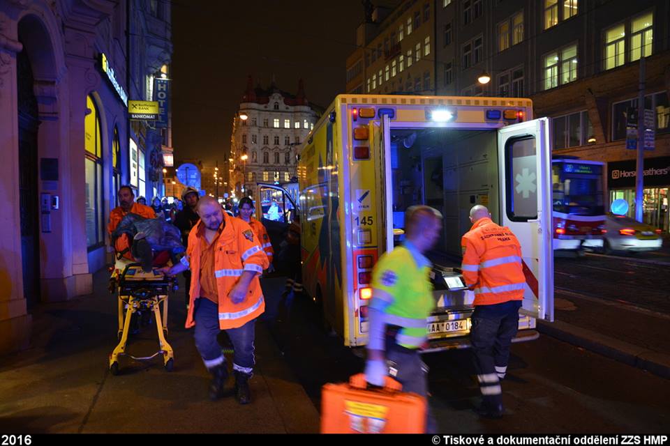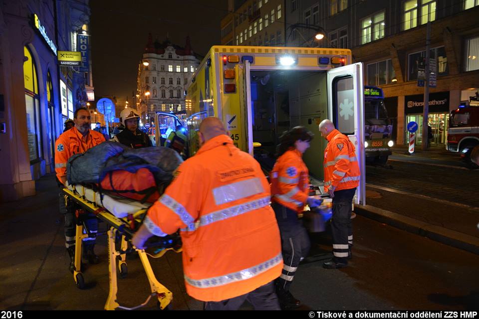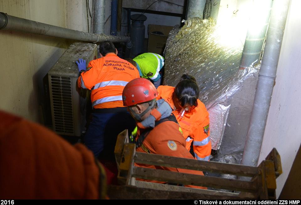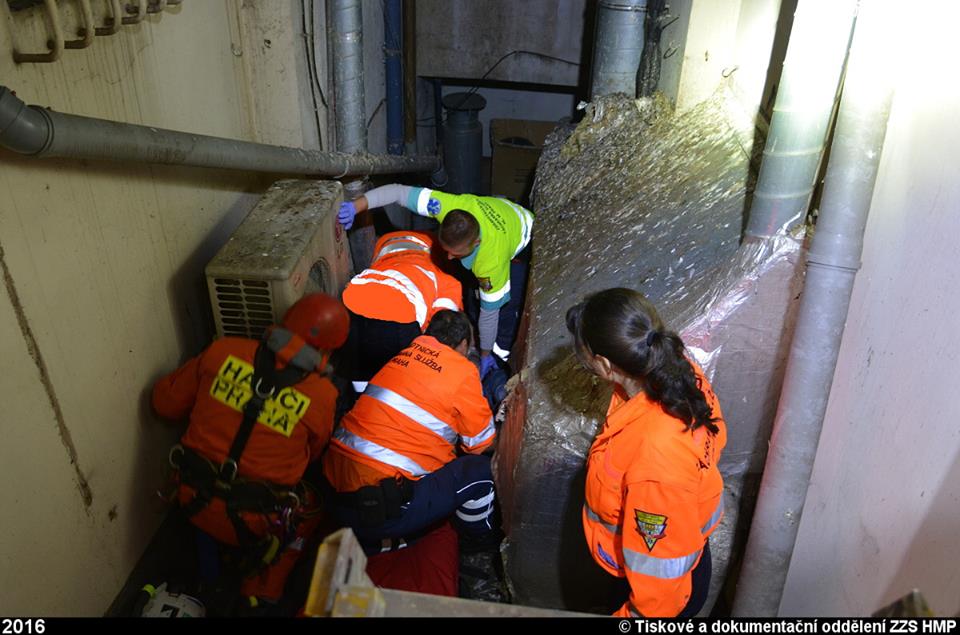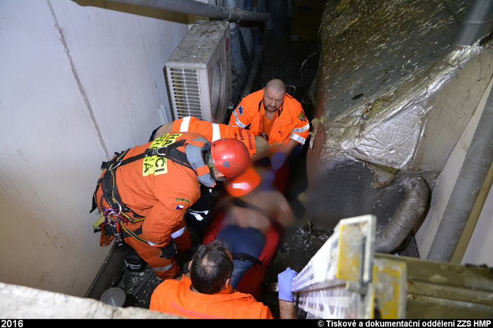 Dispečink ZZS HMP přijal v páteční podvečer tísňové volání z hotelu v centru města. Bylo ohlášeno, že se tam zřítil muž do světlíku. Na místo byly okamžitě vyslány výjezdové skupiny rychlé zdravotnické a lékařské pomoci společně s inspektorem provozu, o součinnost byli požádáni také hasiči a policie.