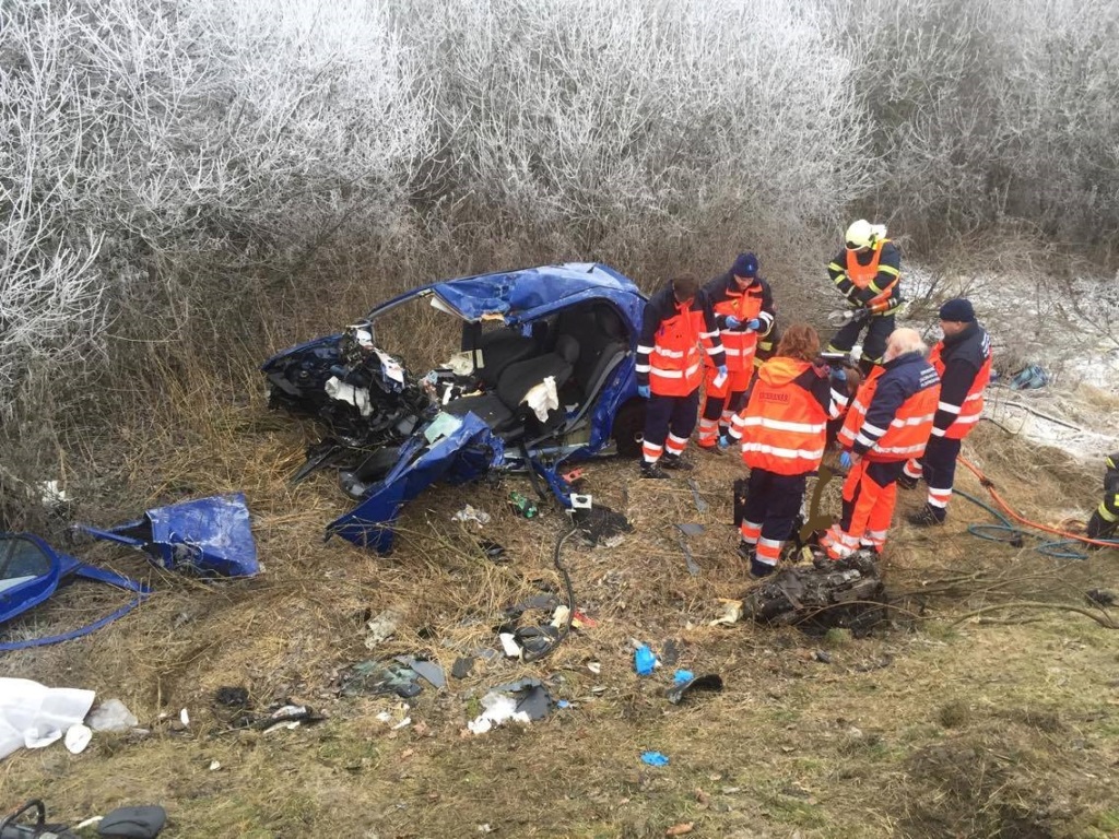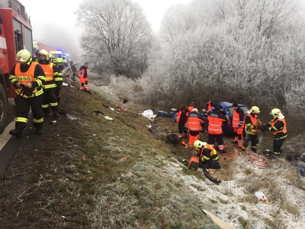 Vozidla se střetla čelně. Osobní auto bylo po nárazu odmrštěno a skončilo na střeše v hlubokém příkopě asi 5 metrů pod úrovní silnice. Uvnitř cestovaly dvě osoby. Řidič i jeho spolujezdkyně byli na místě mrtví. Hasiči vyprostili jejich těla a předali lékaři ZZS a koronerovi k ohledání.